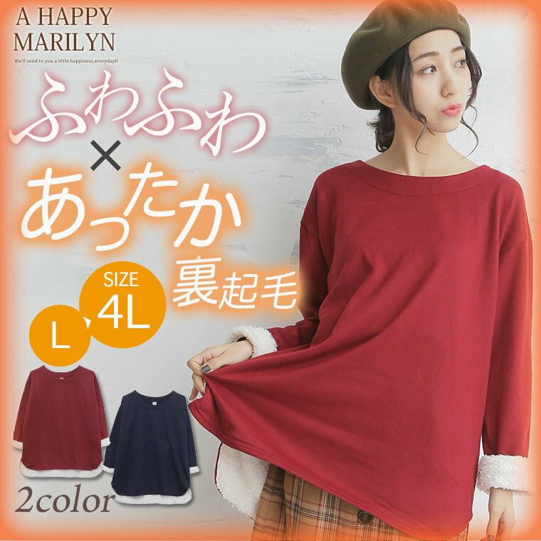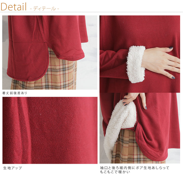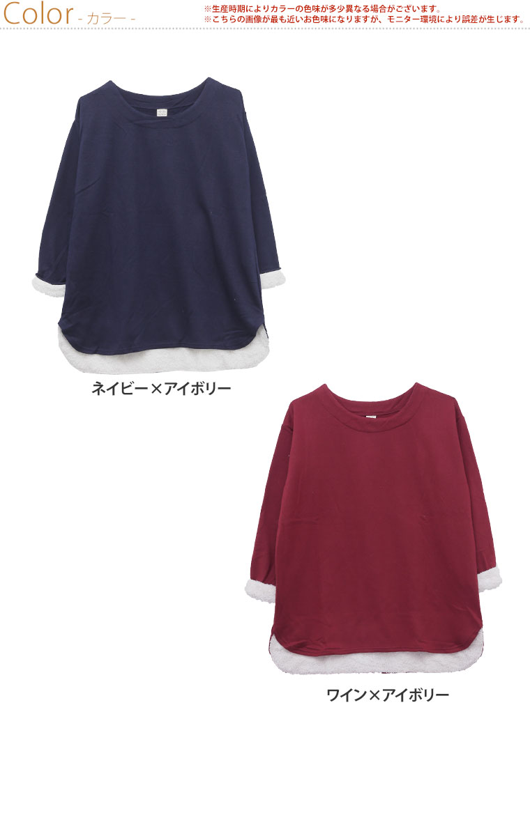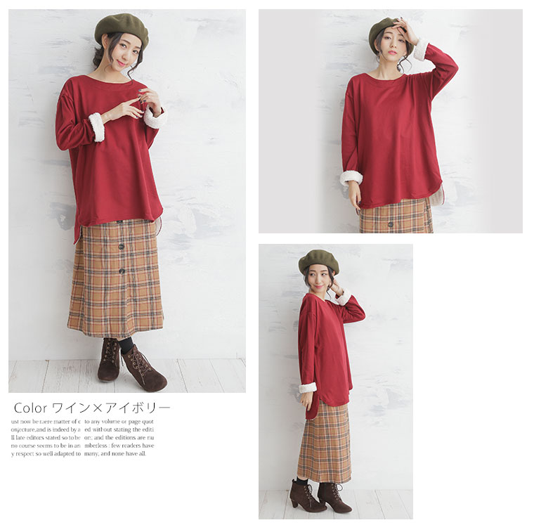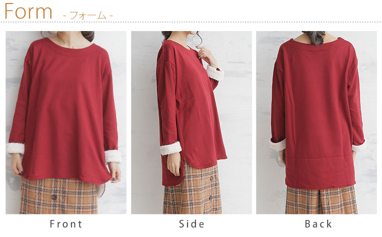 袖口と後ろ裾内側にボア生地をあしらってフェミニンな。裏起毛長袖プルオーバー