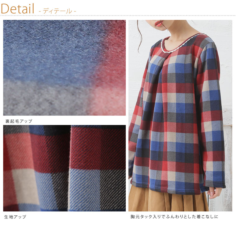 裏起毛でほっこり暖か♪チェック柄フロントタックプルオーバー