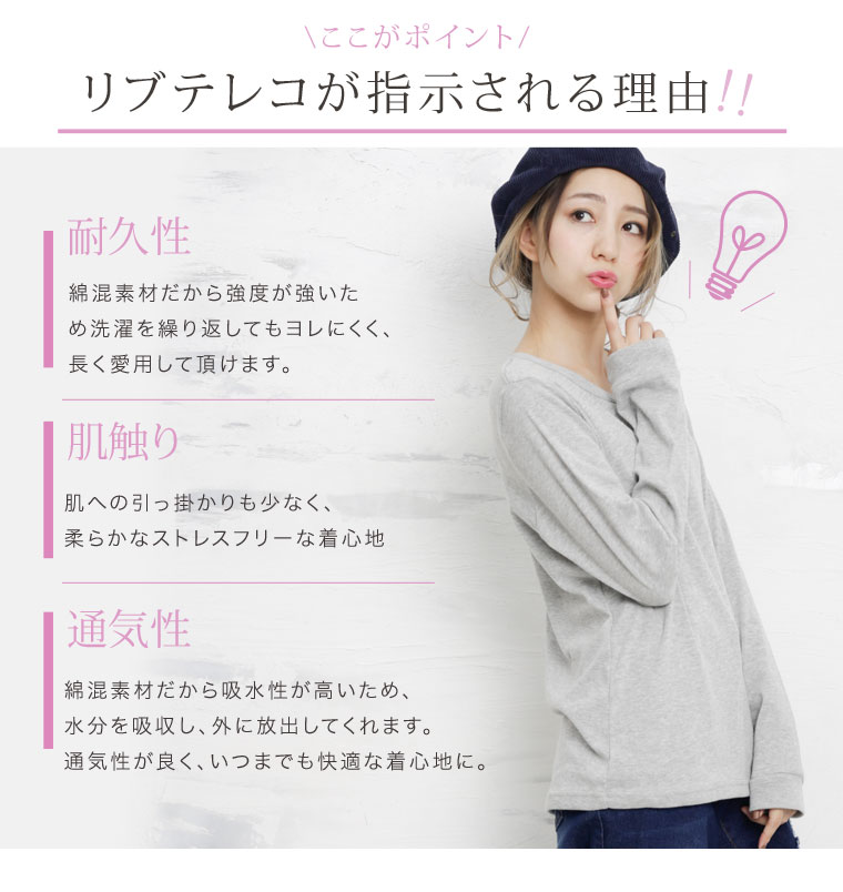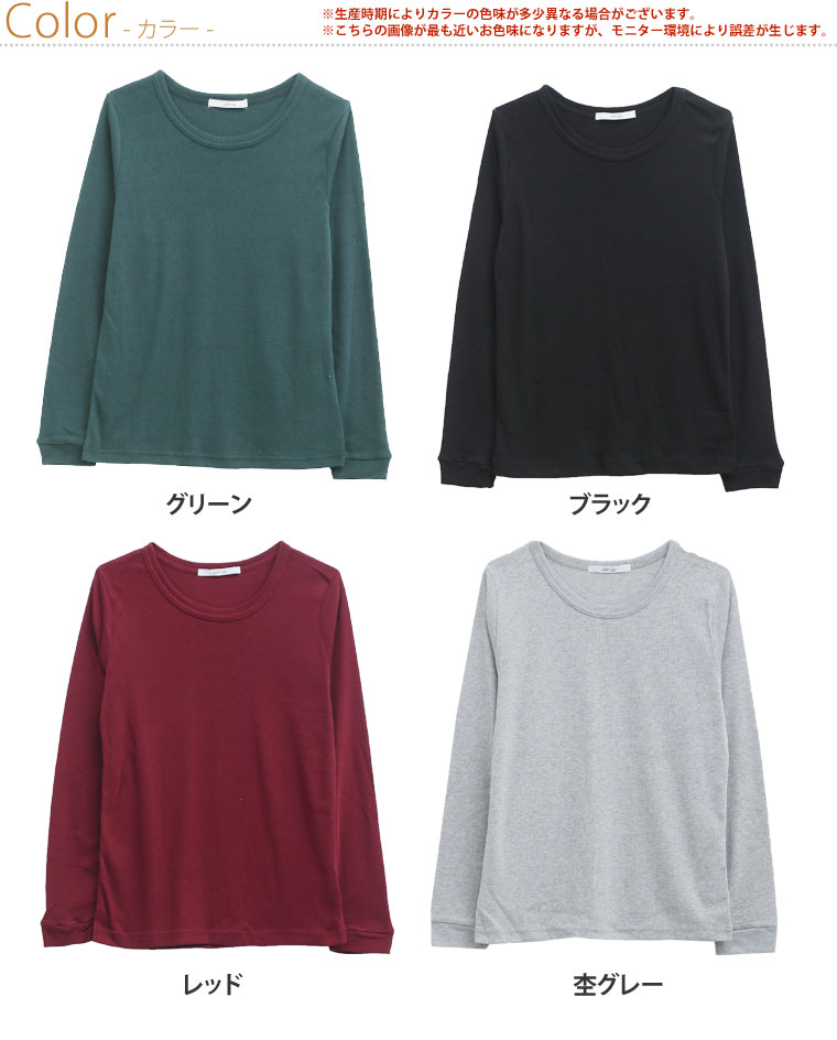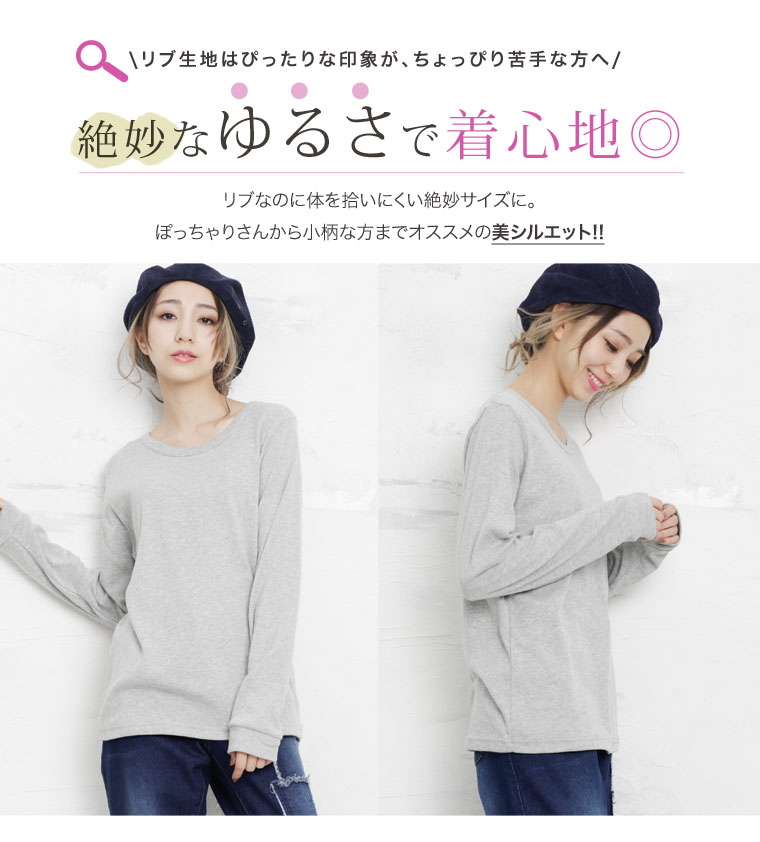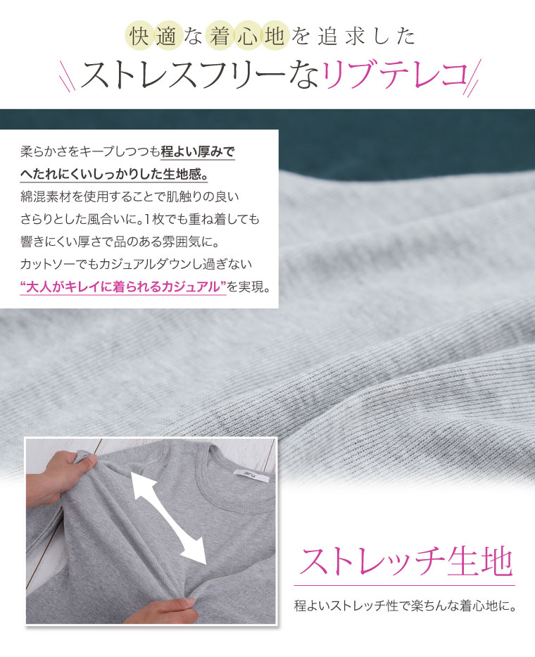 着ぶくれしにくいリブ素材で着心地◎リブクルーネック長袖プルオーバー