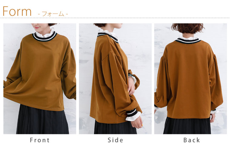 ドロップショルダーでゆったりとした着心地に。ふんわりボリューム袖で腕周りをカバー◎