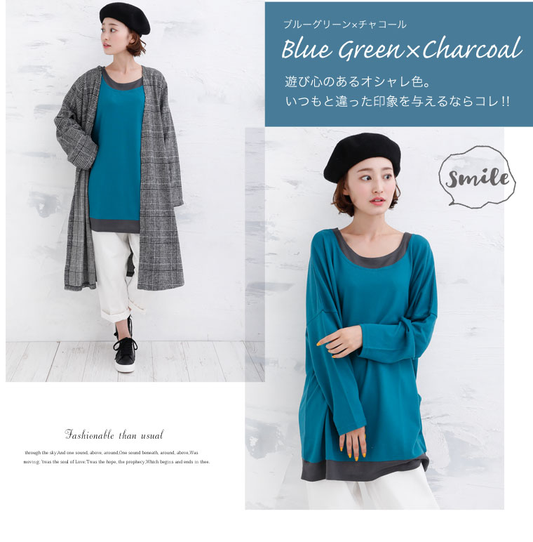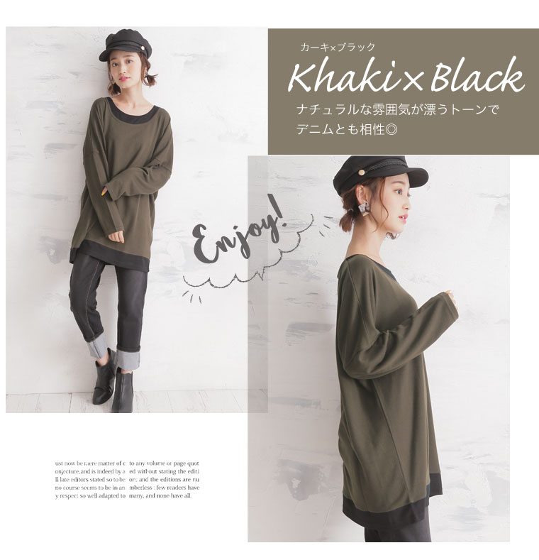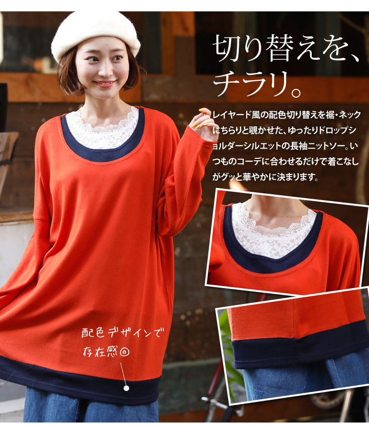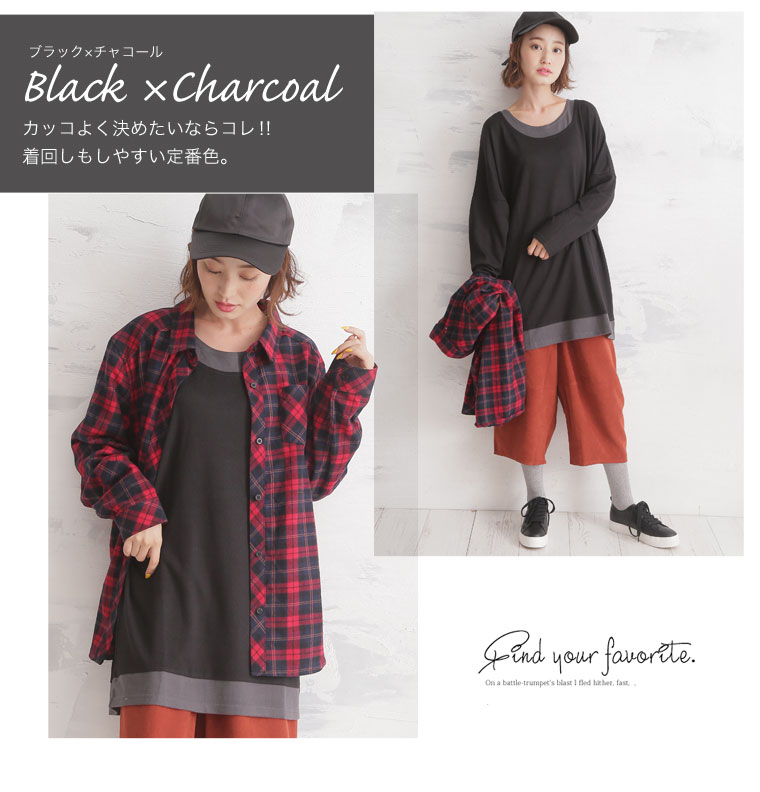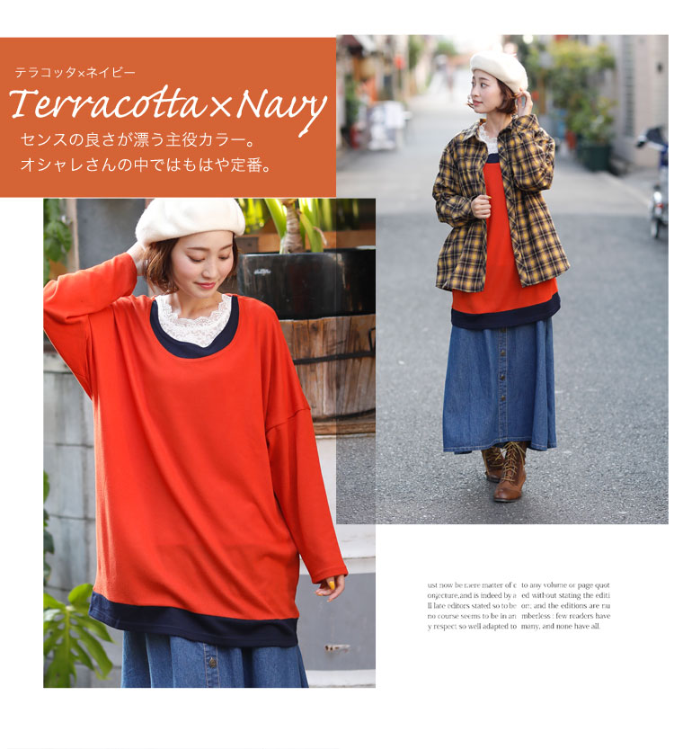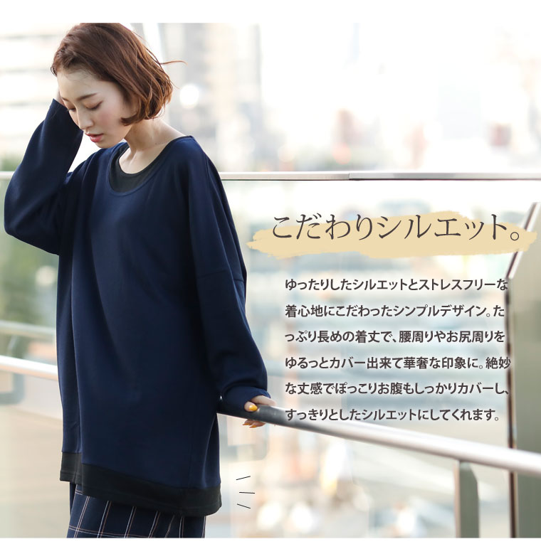 フェイクレイヤードデザインで1枚でもオシャレに。ゆったりプルオーバー