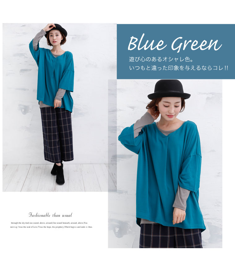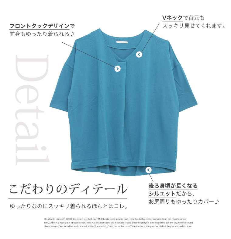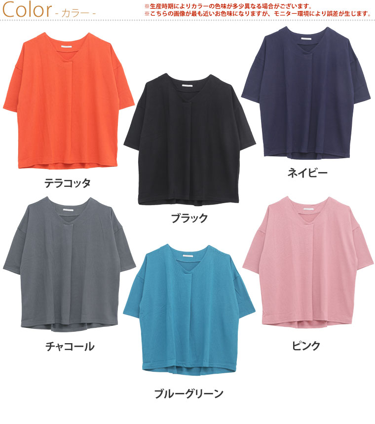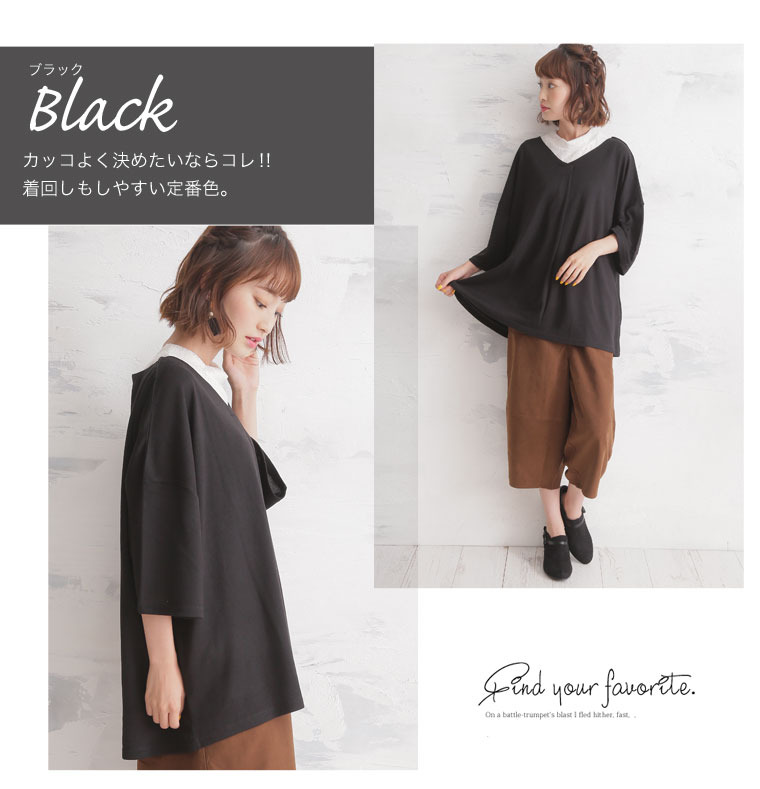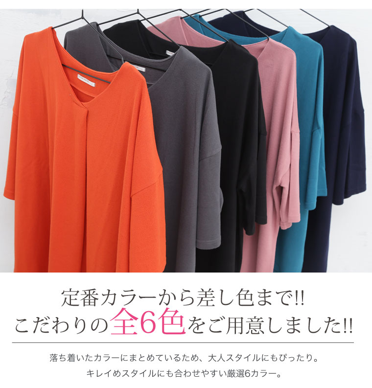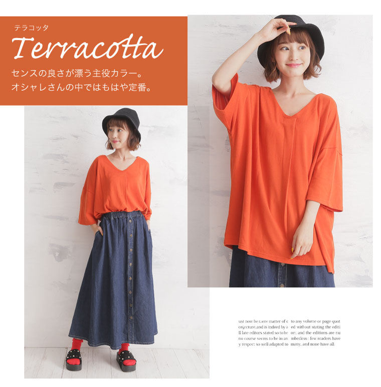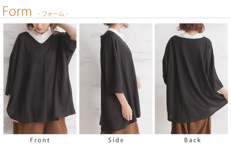Vネックで首元スッキリ見せ!!後ろ身頃が長くなるシルエットで抜け感を演出
