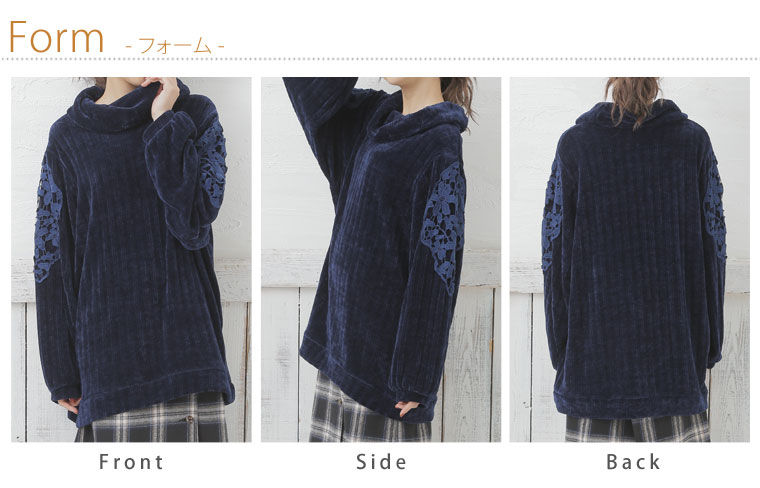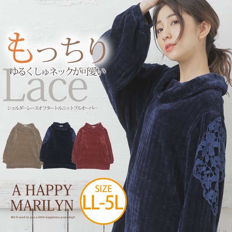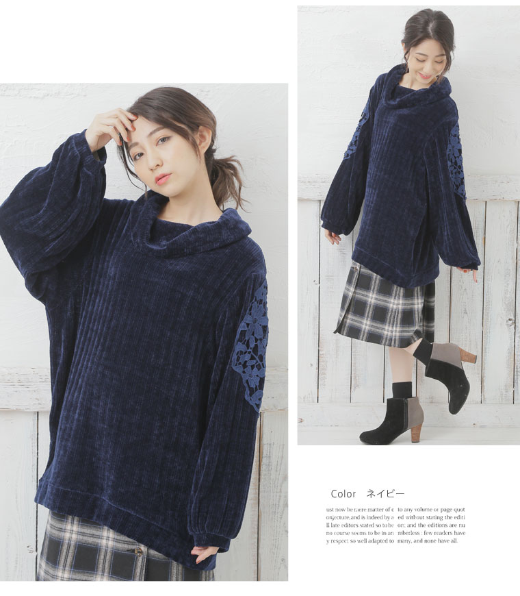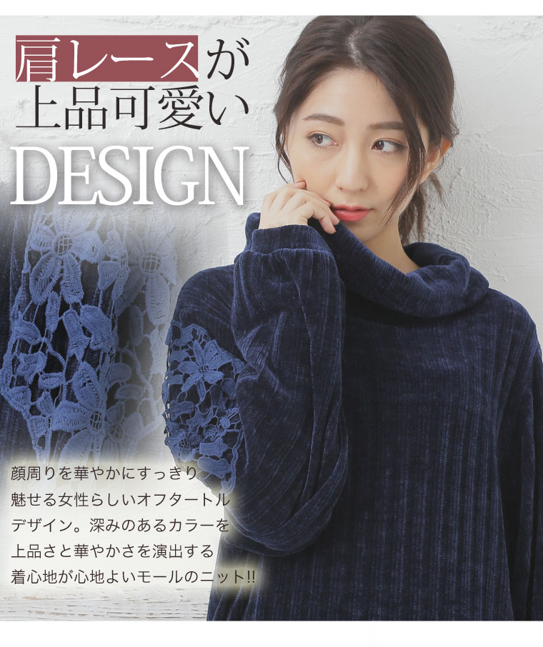 ショルダーレースで華やかな着こなしに。オフタートルもっちりプルオーバー