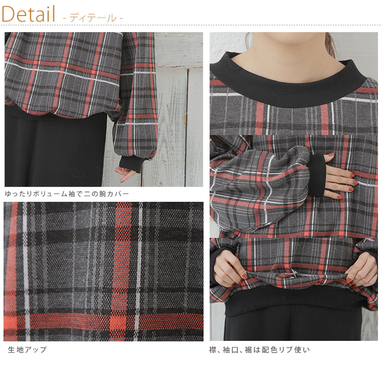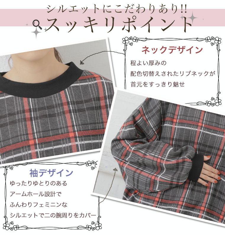 トレンド感ある落ち着いた色合いのチェック3柄から選べる。ボリューム袖で腕周りカバー