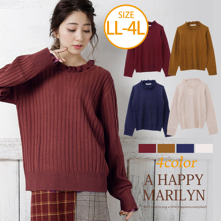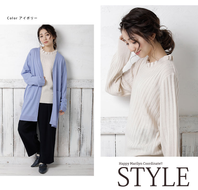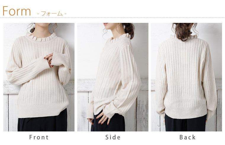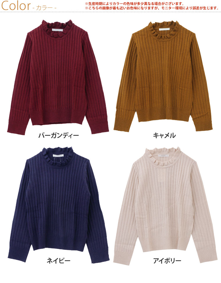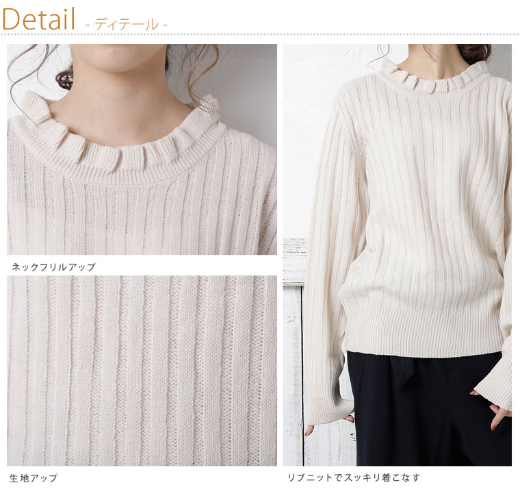 リブ編み×襟フリルが華やかなアクセント。スッキリ着こなすニットプルオーバー