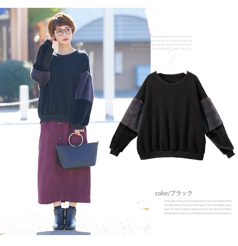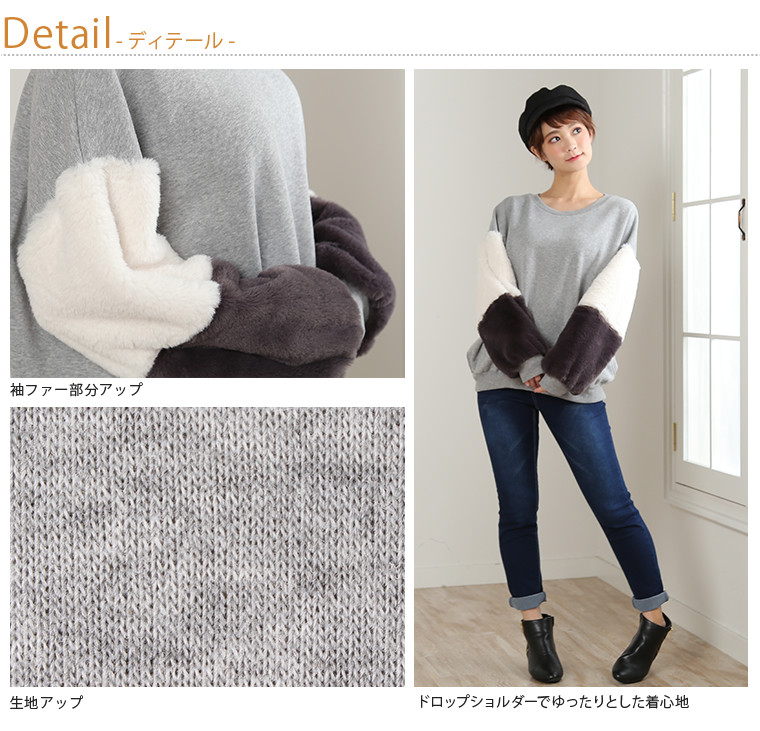 袖ファーがキュート!裏起毛ファー配色トレーナー