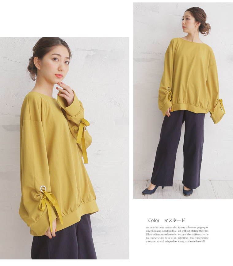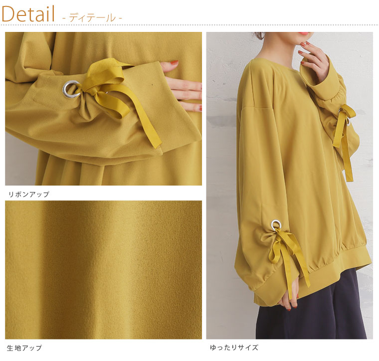 カットジョーゼット素材で華やかな着こなしに。リボンボリューム袖トップス