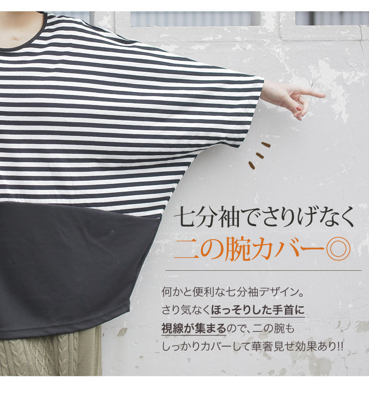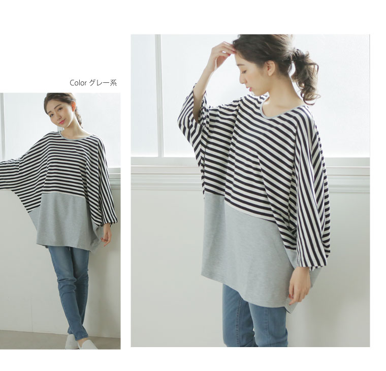ボーダー×無地の切替デザインでメリハリスタイル。ゆったりプルオーバー