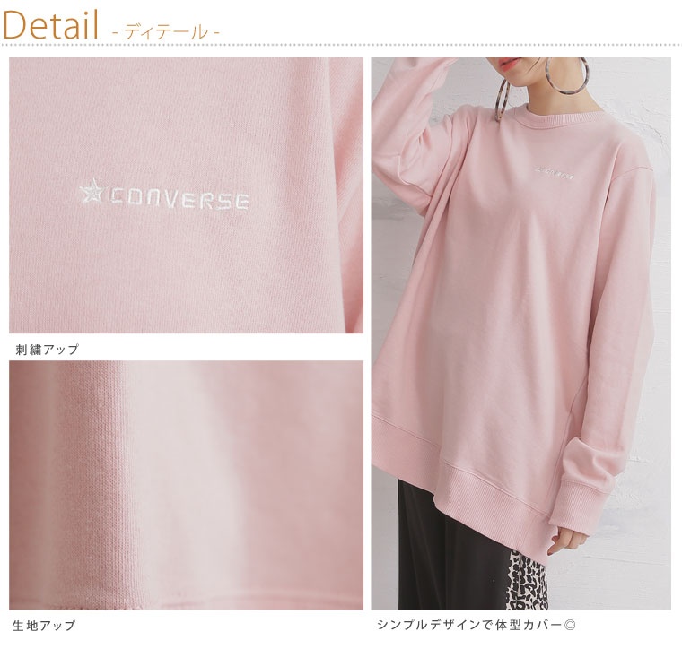 LL 3L 4L 5L 春 春物 春服 ぽっちゃり かわいい おしゃれ カジュアル 可愛い 大人 ビッグサイズ コンバース ( CONVERSE ) 裏毛 ワンポイント刺繍 長袖 プルオーバー