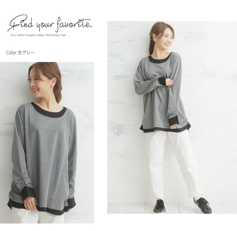 ちらりと覗く配色デザインがお洒落!!くしゅくしゅとした袖裾デザインがアクセント!!