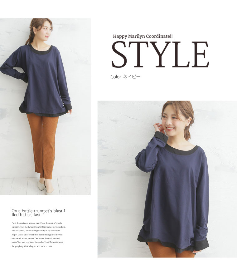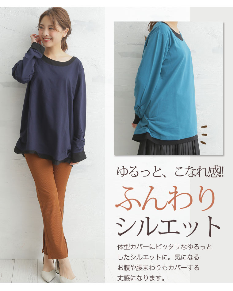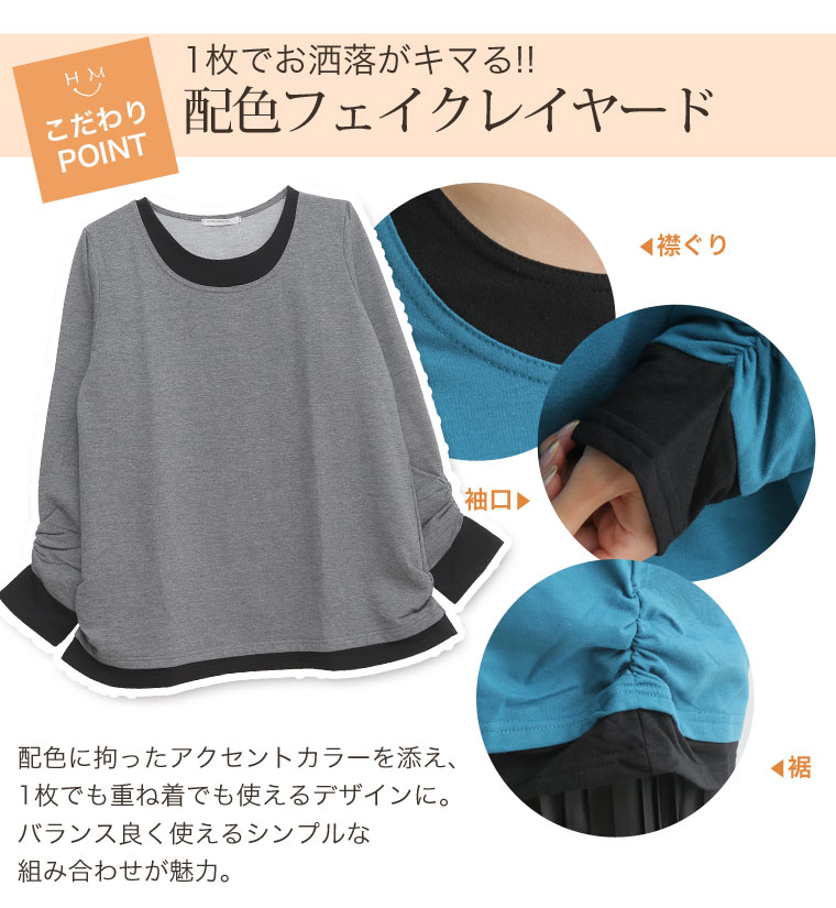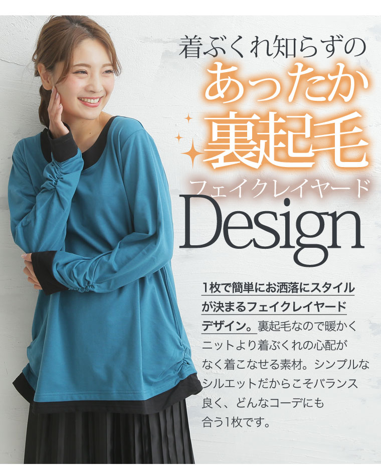 裏起毛で暖かな着こなし!!フェイクレイヤードデザインプルオーバー
