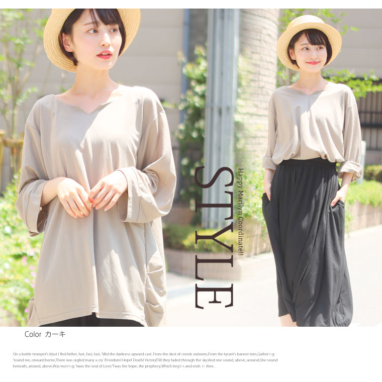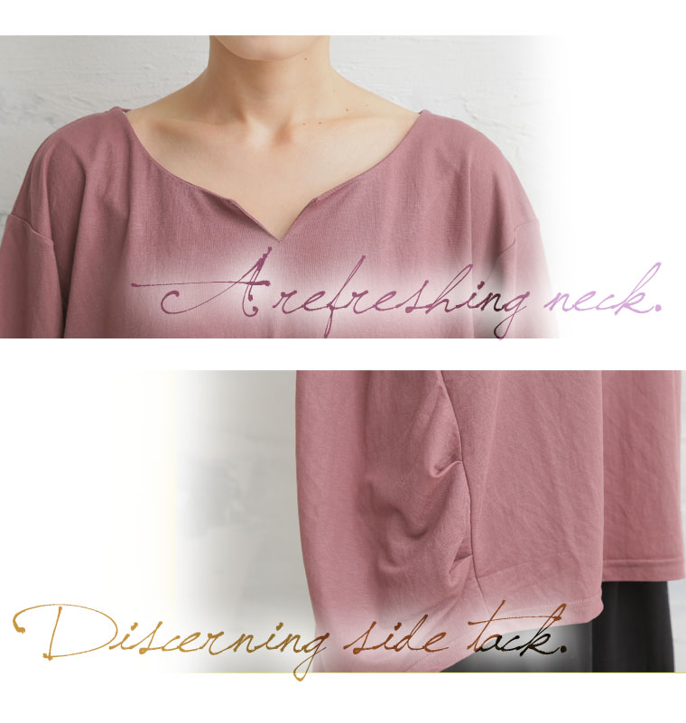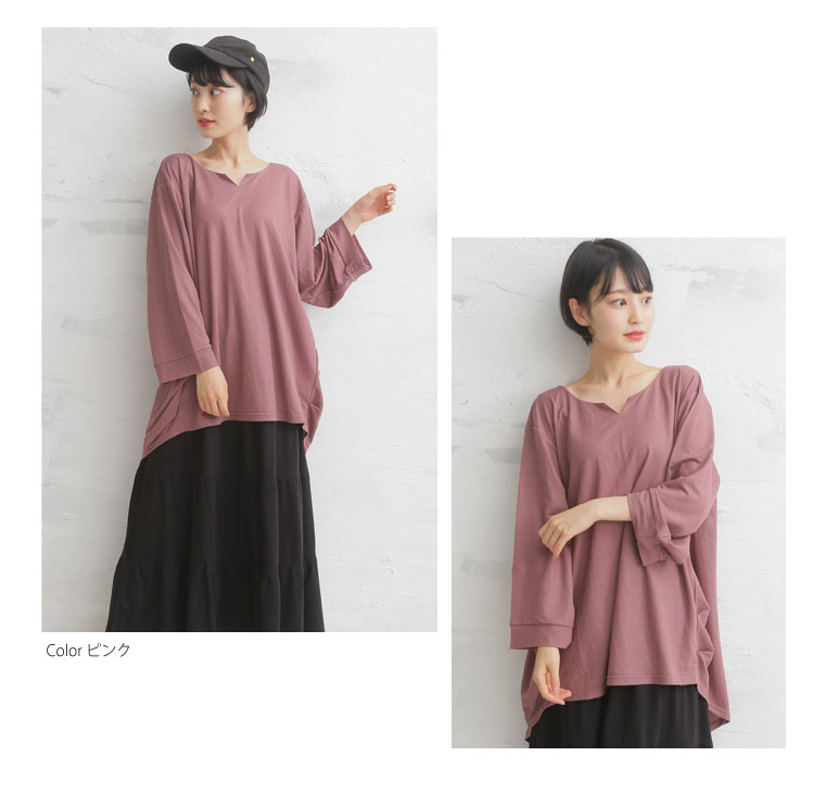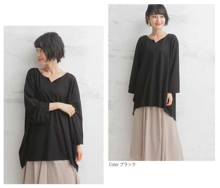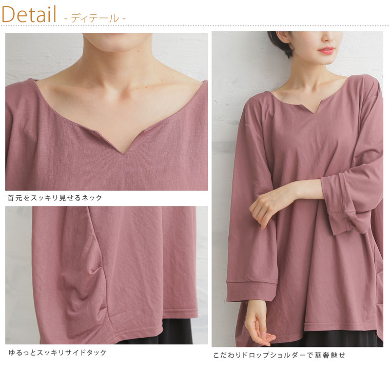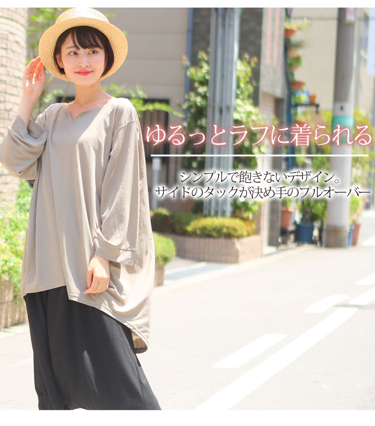 裾タックがゆったり体型カバー♪キーネック裾タックプルオーバー