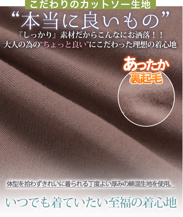 あったか裏起毛が心地良い。ゆったりラインで体型カバー