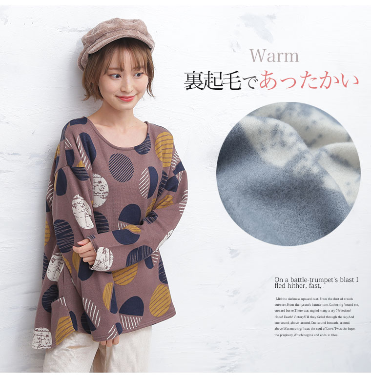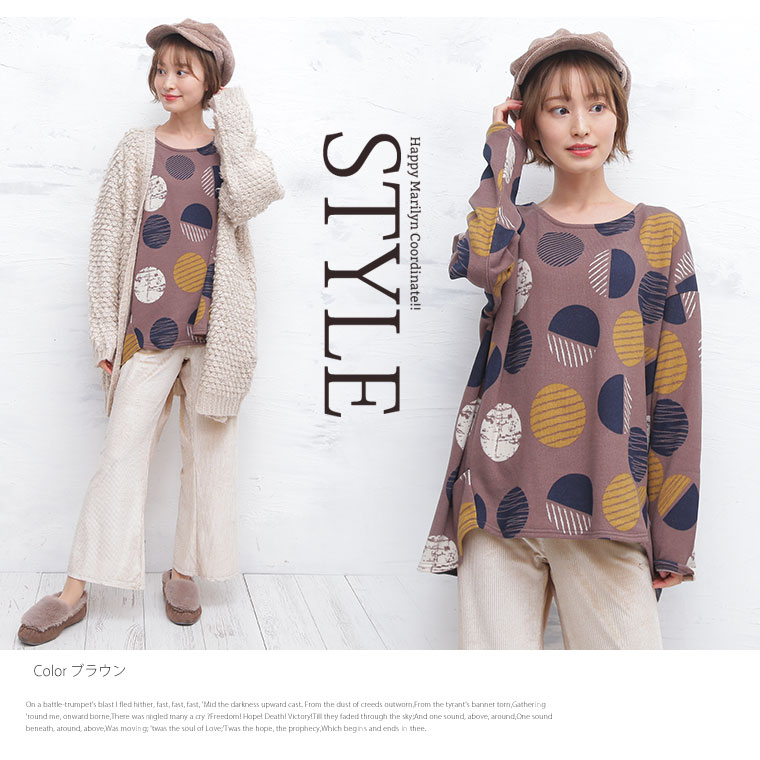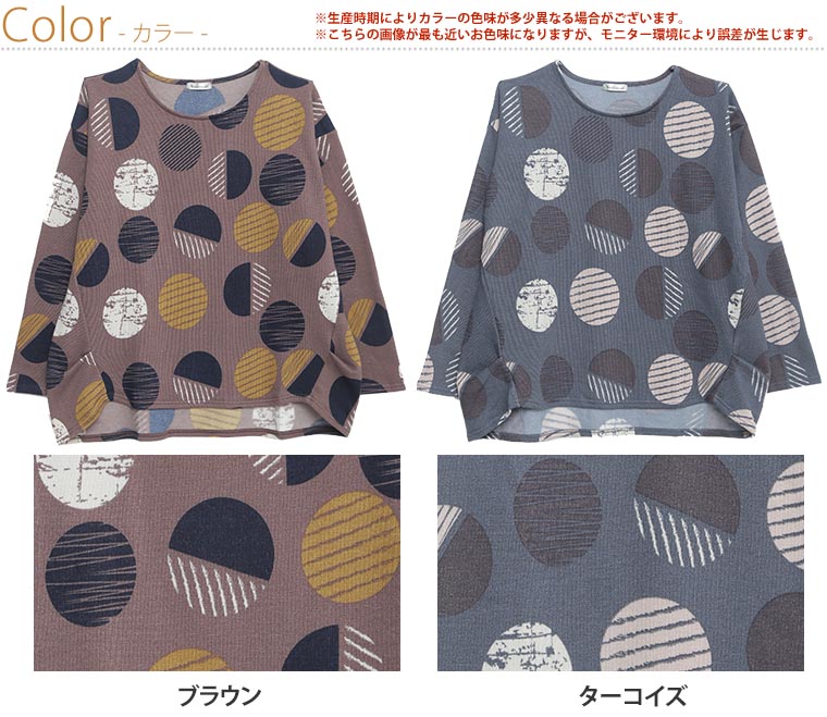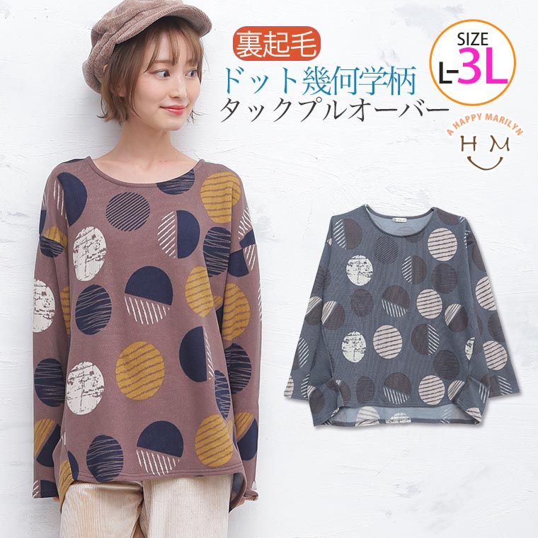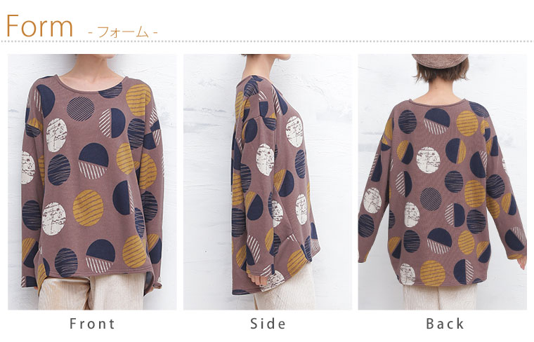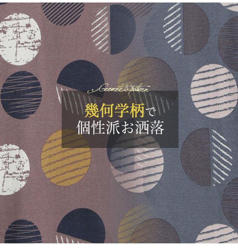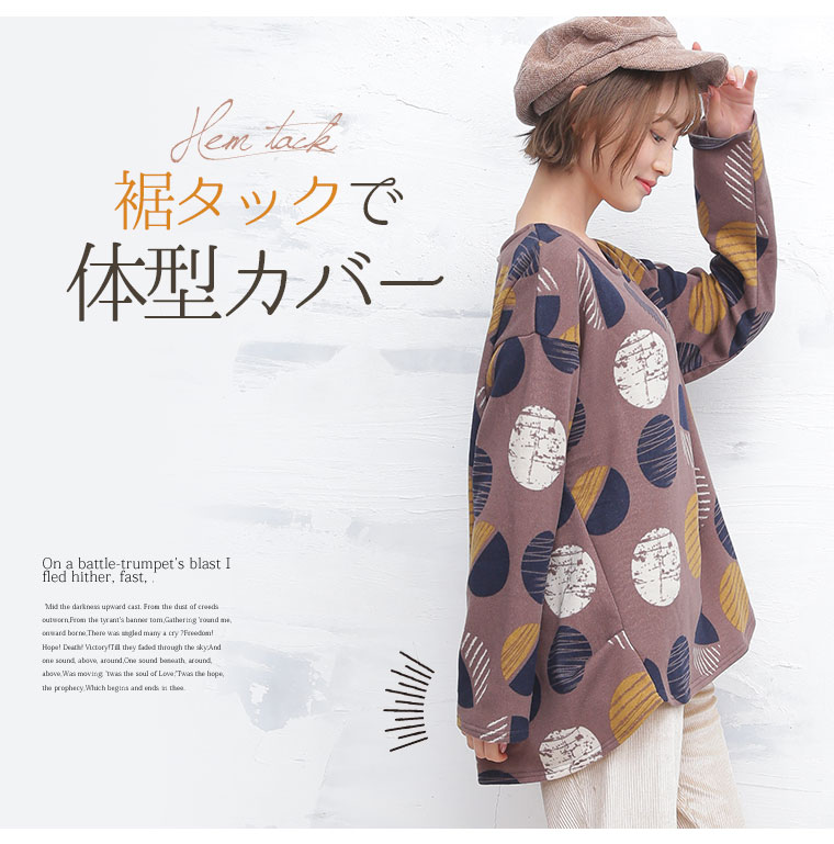 裾タックで体型カバー!ドット幾何学柄タックプルオーバー