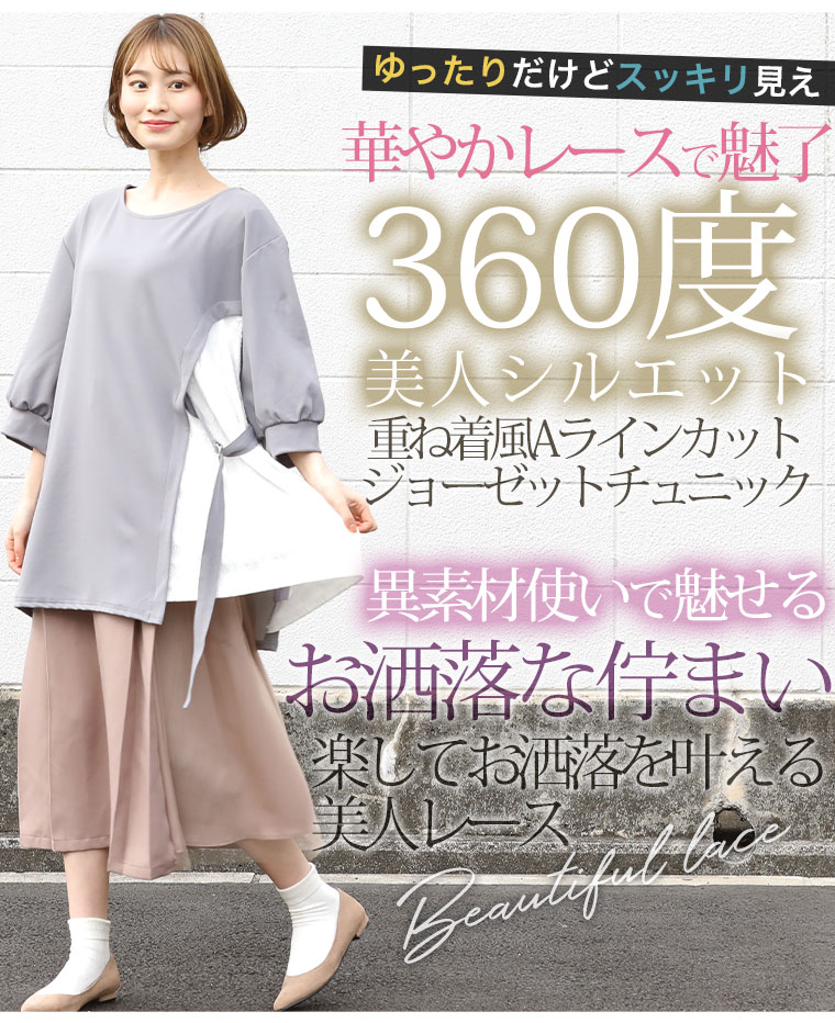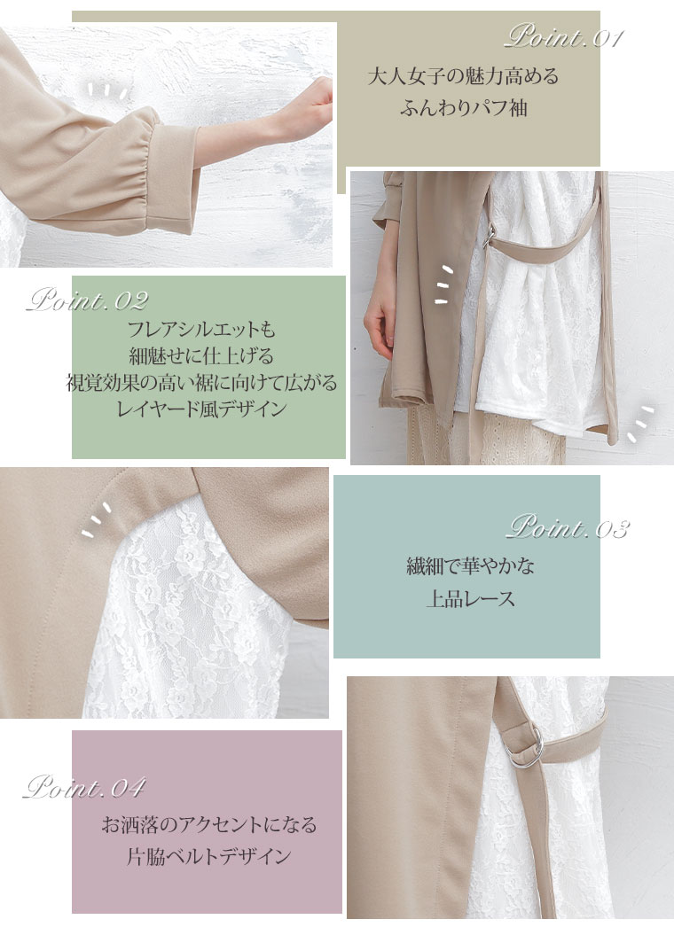 華やかレースとAラインで360度抜かりなし!重ね着風デザイン