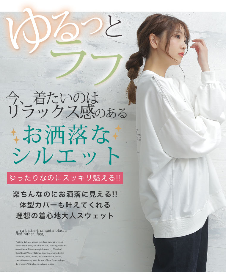 大人可愛いバックロゴプリント リラックスできるシルエットで後ろ姿も抜かりない