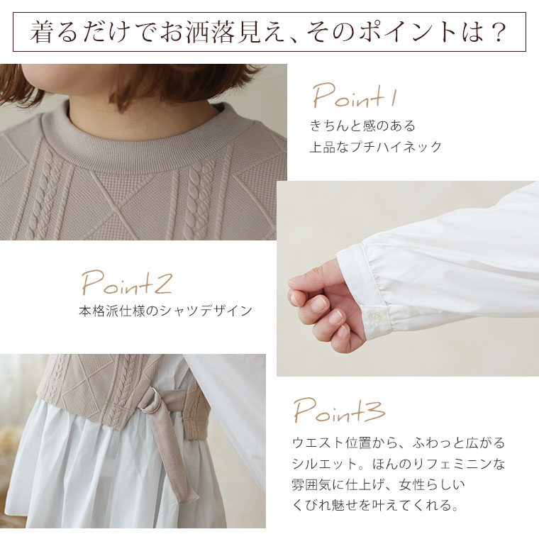 一枚でコーディネートできるレイヤード風カットソー×シャツ
