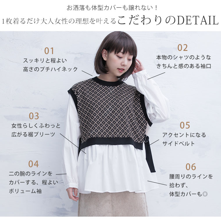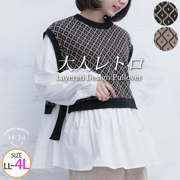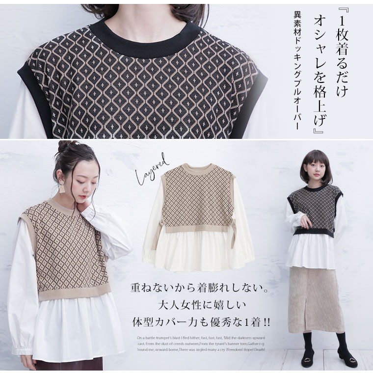 大人レトロな異素材ドッキングプルオーバー