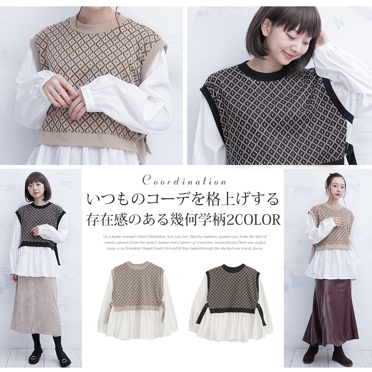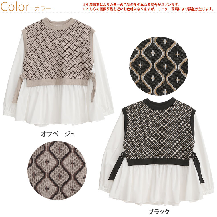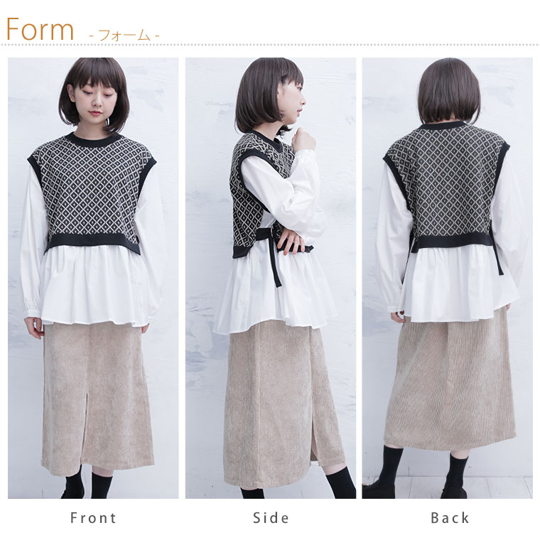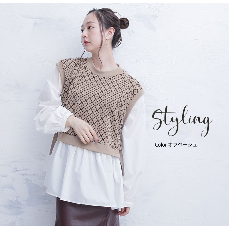 ニットとシャツで重ね着風デザインでお洒落にコーディネート