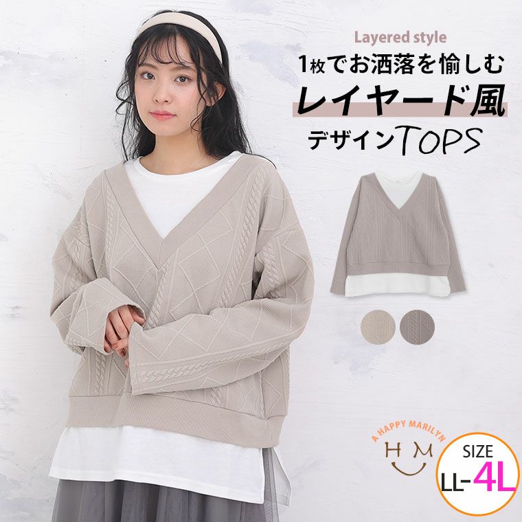 レイヤード風デザインで1枚でお洒落なコーディネートが完成