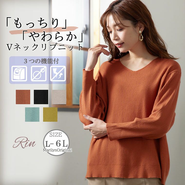 毛玉になりにくい細魅せリブ Vネック ニット