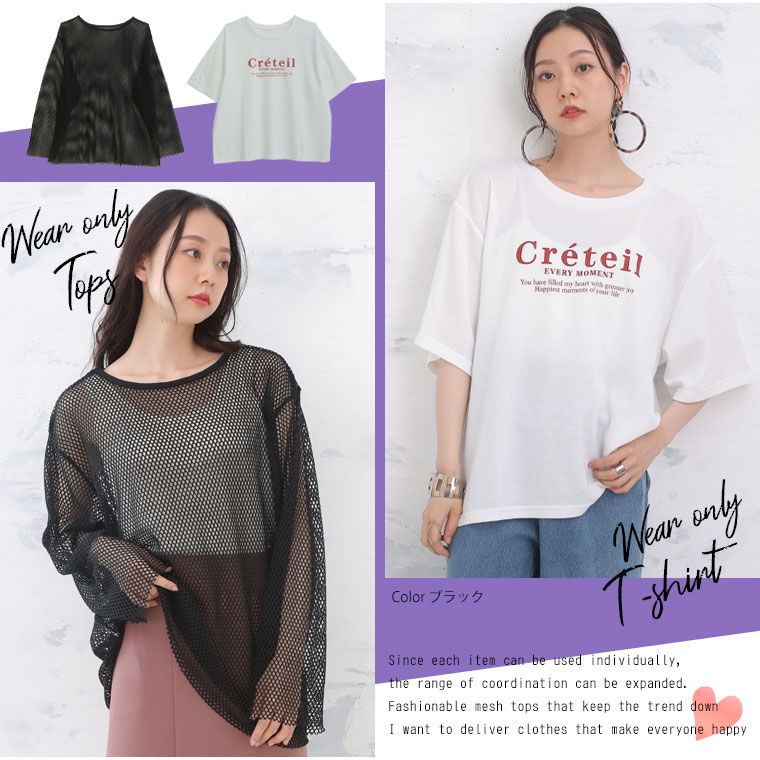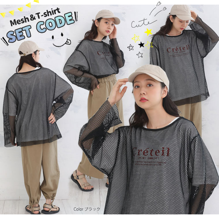 カジュアルなトレンド”メッシュ”アイテム メッシュトップス&Tシャツ2点セット