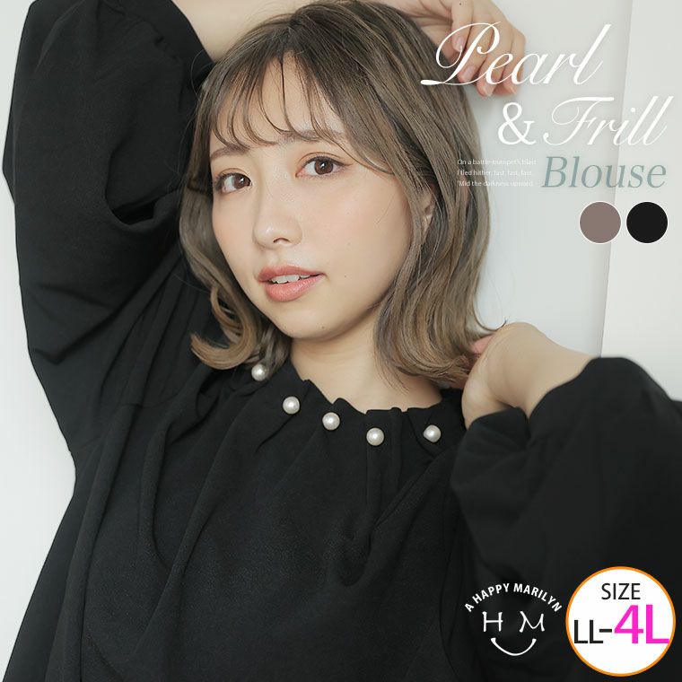 襟元パール使いでフェミニンにかわいくコーデできる2Way袖ブラウス