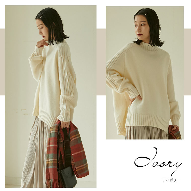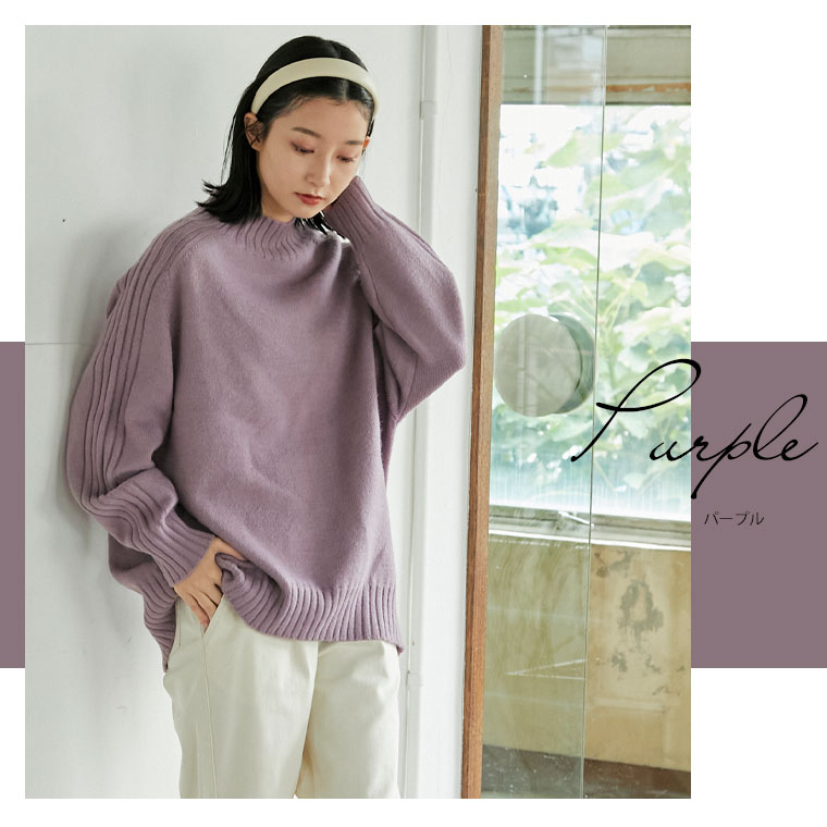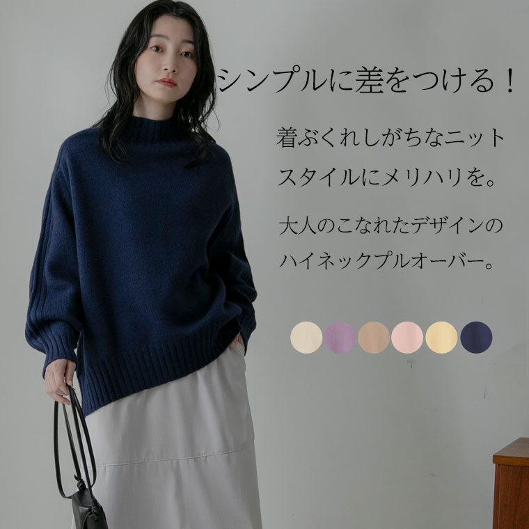 袖リブハイネックプルオーバー
