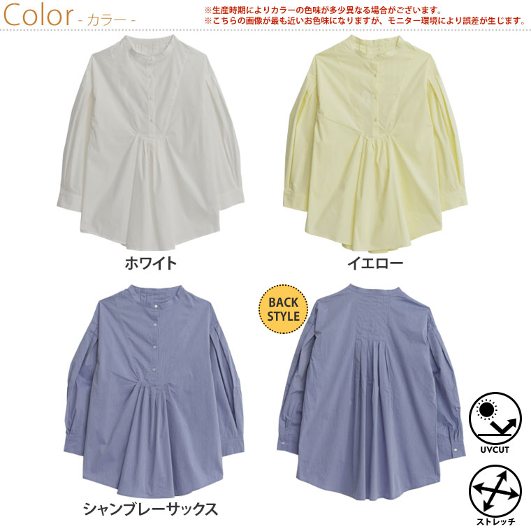 6. 大きいサイズ 【LUMFORLE produced by My:nia】フロントタック ストレッチ シャツチュニック