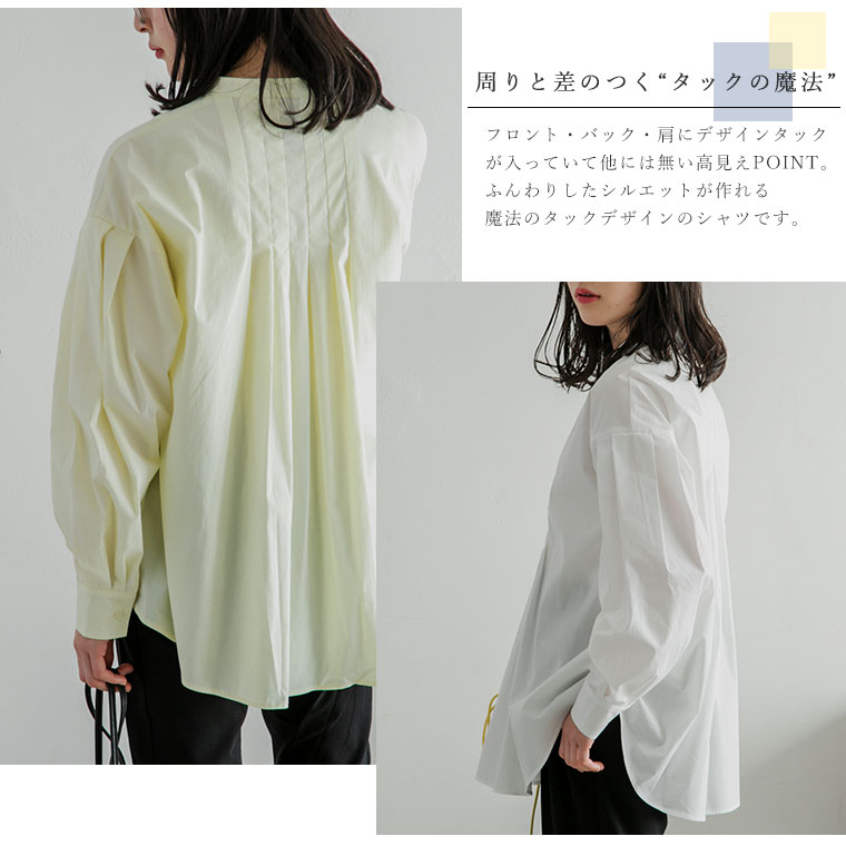 4. 大きいサイズ 【LUMFORLE produced by My:nia】フロントタック ストレッチ シャツチュニック