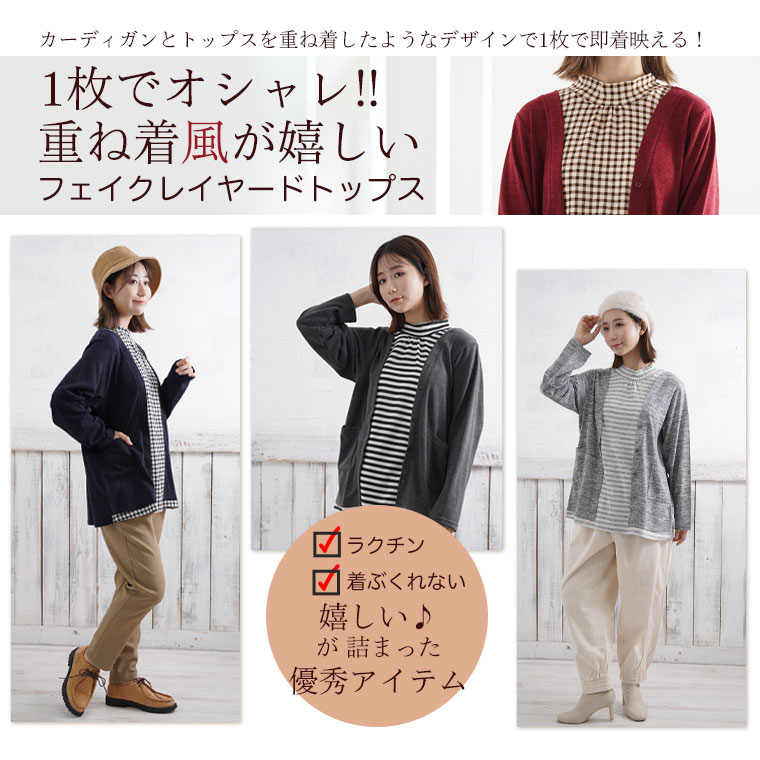 重ね着風が嬉しい♪フェイクレイヤードトップス