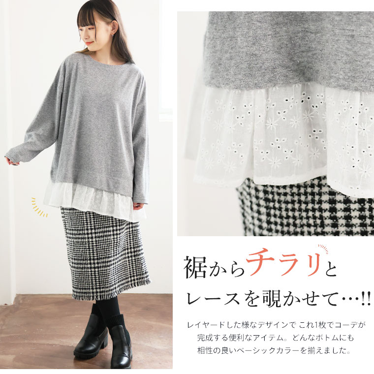 ちらりと覗くレースが大人かわいい プルオーバー
