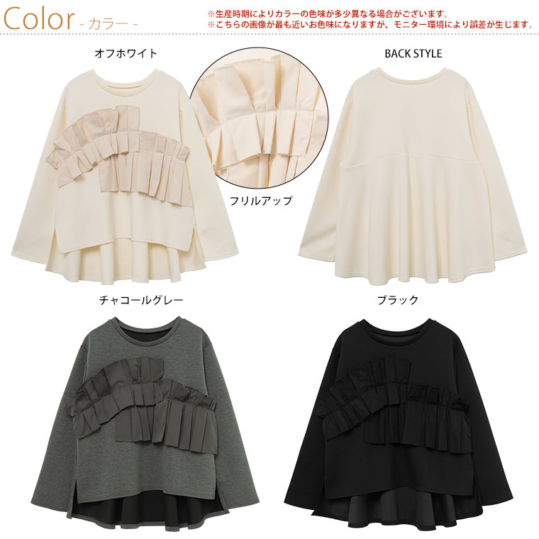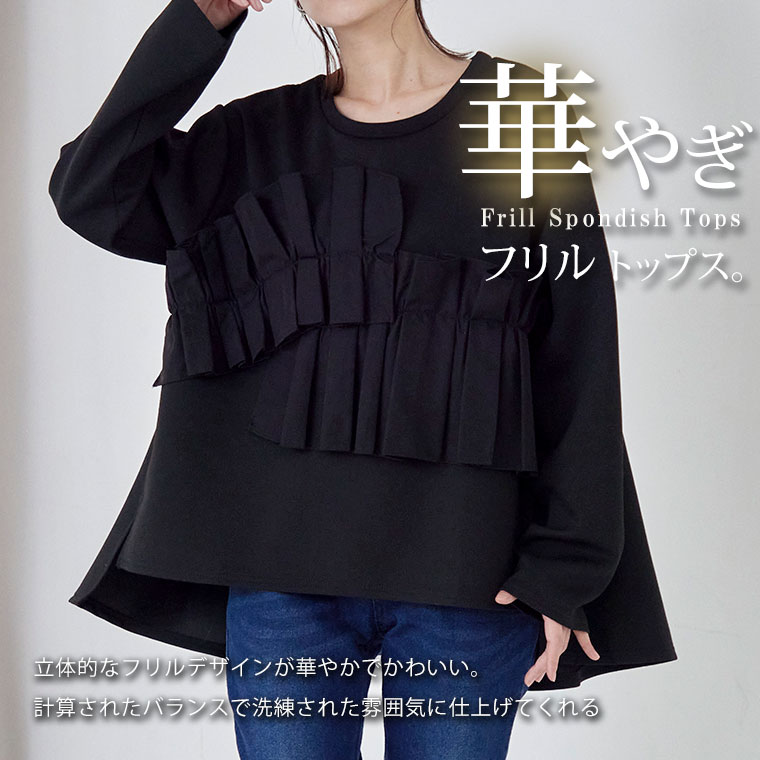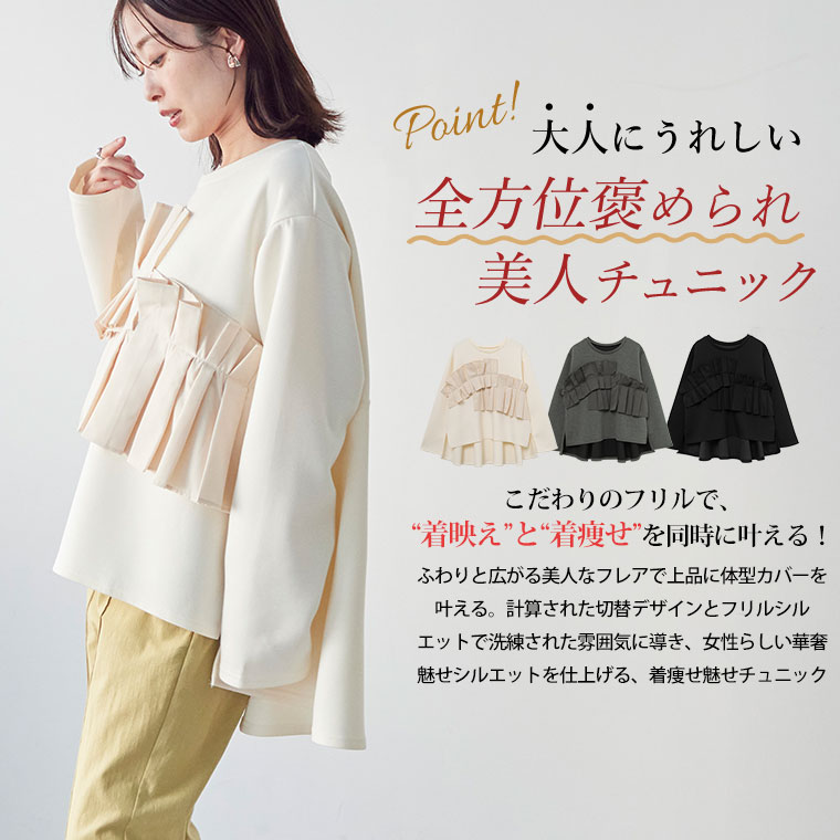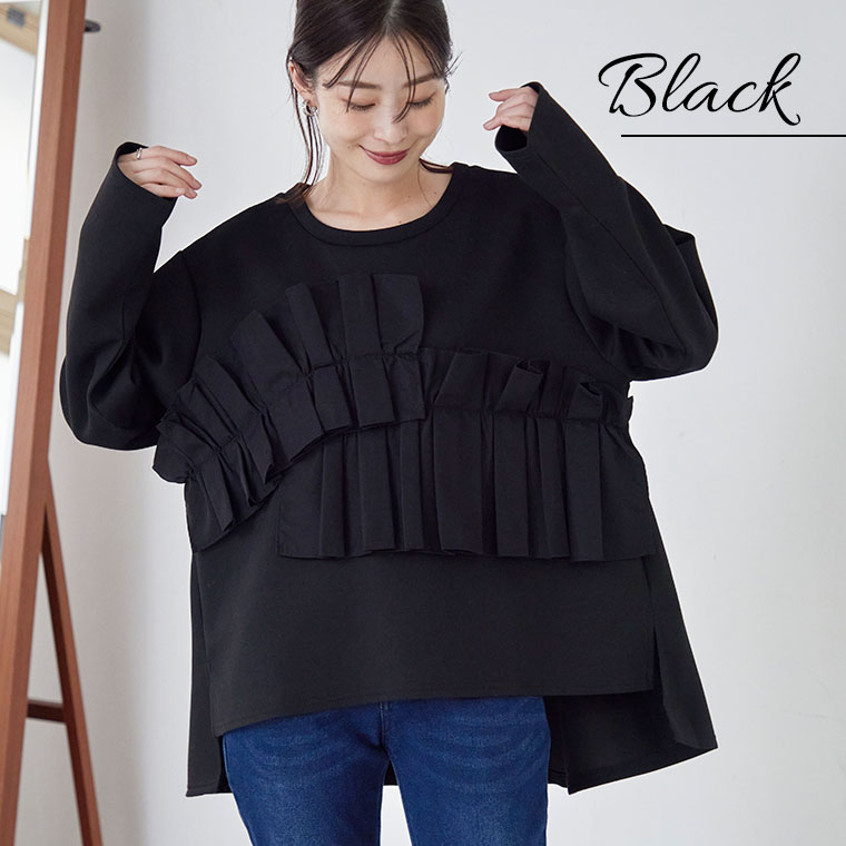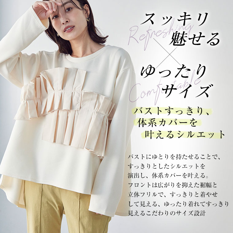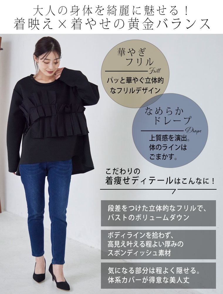 着やせて華やぐ!フリルデザインスポンディッシュリバーカットプルオーバー