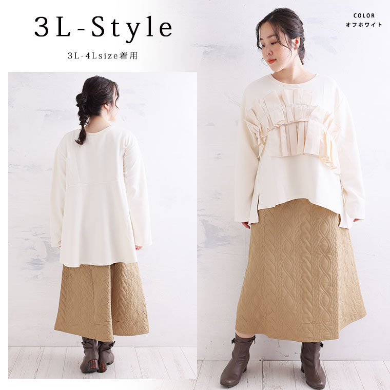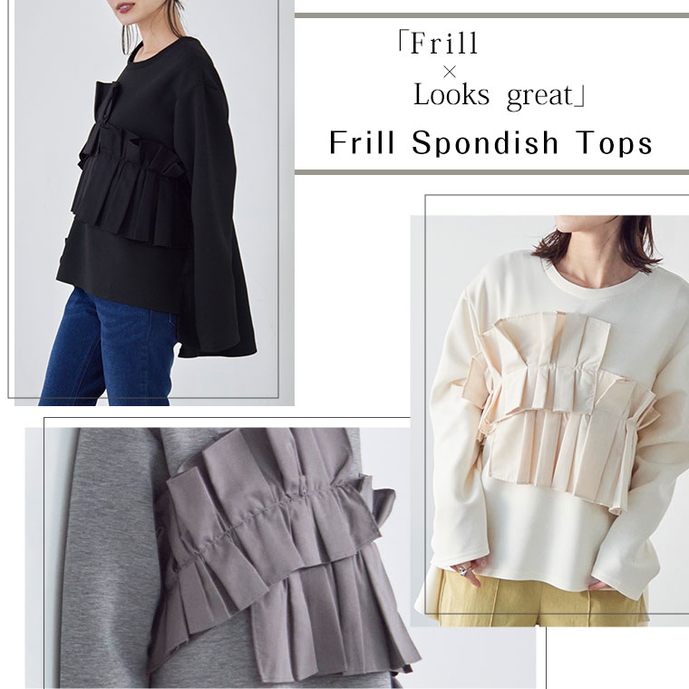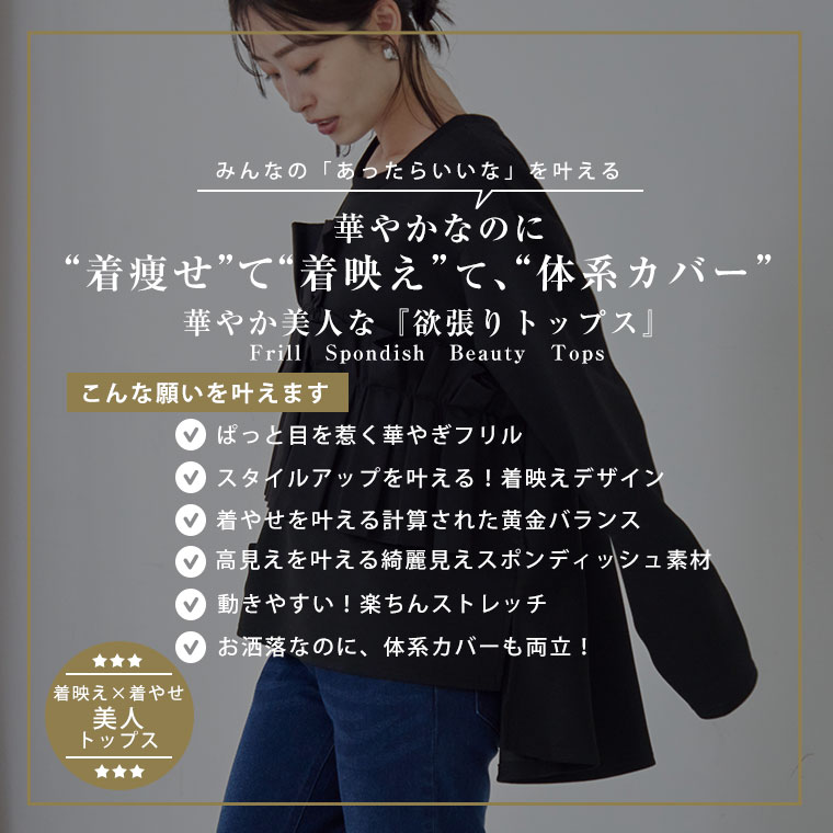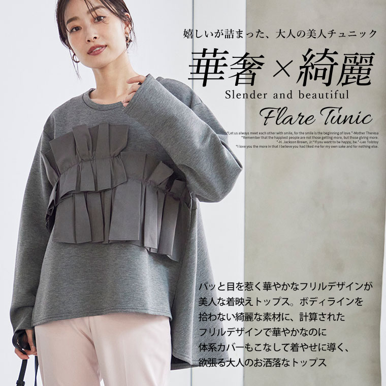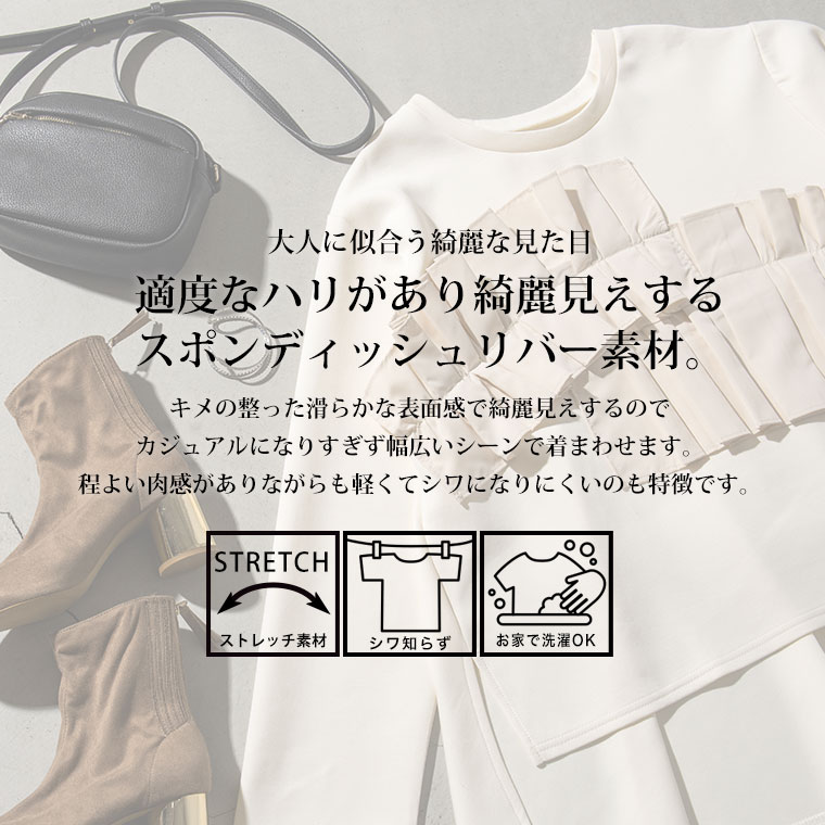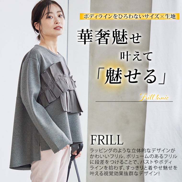 着やせて華やぐ!フリルデザインスポンディッシュリバーカットプルオーバー