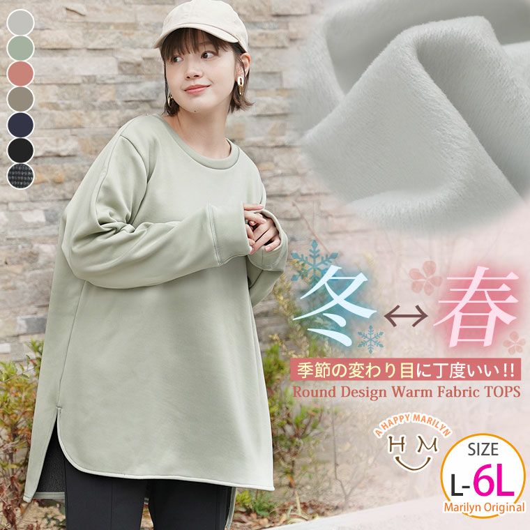 オリジナル カットソー LL 3L 4L 5L 6L 冬 ぽっちゃり ゆったり お腹 胸周り 長袖 春 天使の裏起毛 ゆったり着られてすっきり魅せる あったか 裏ベロア 裾ラウンド  ゆるチュニック 裏起毛 ストレッチ | 大きいサイズの通販ならハッピーマリリン