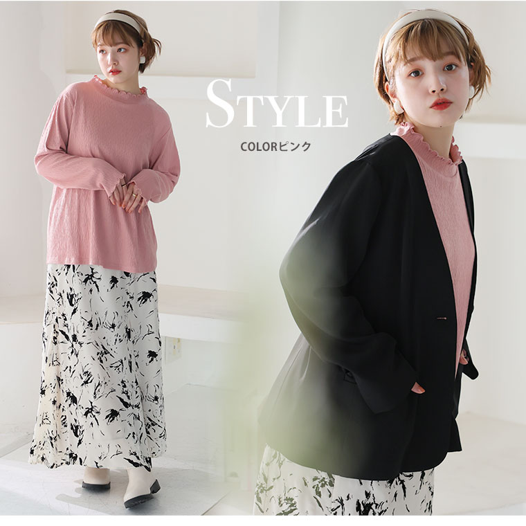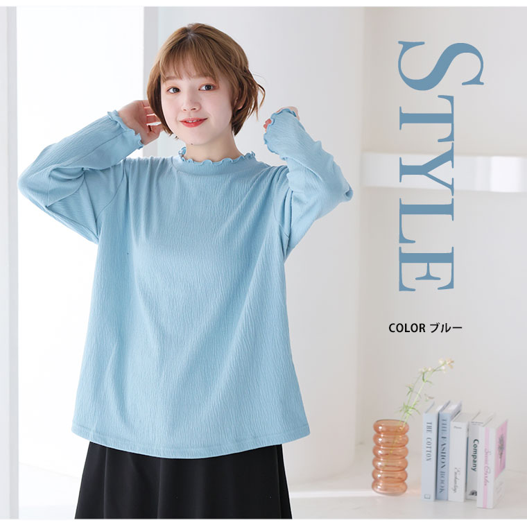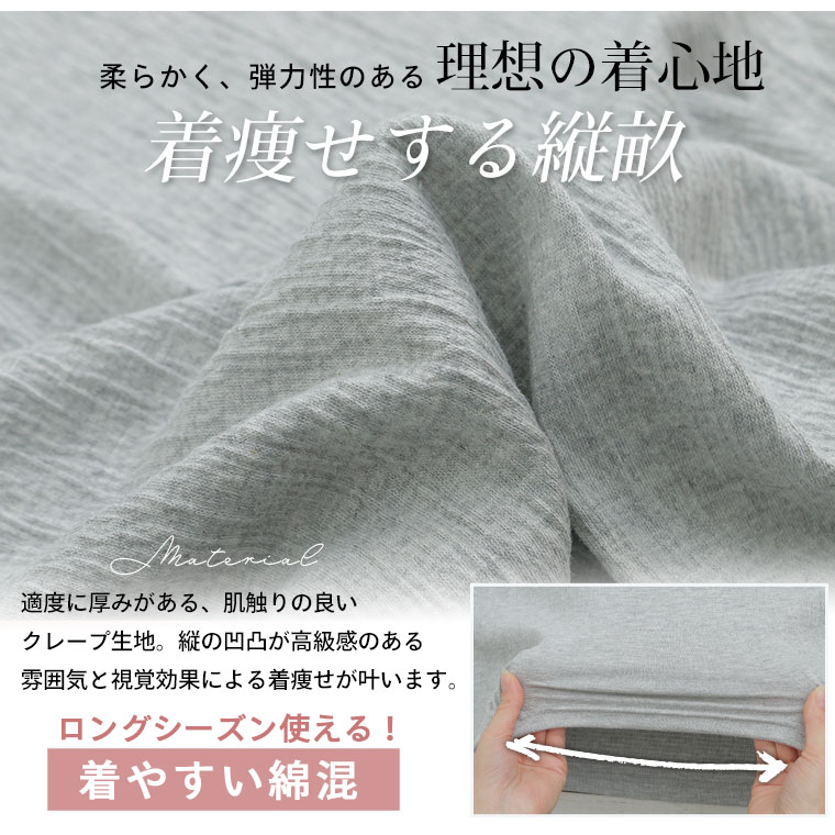 インナーでおしゃれに魅せるメロークレープ生地プルオーバー
