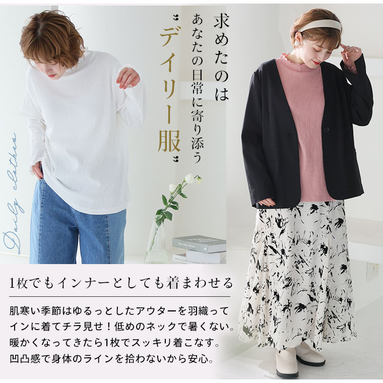カットソー プルオーバー LL 3L 4L 5L 春 春物 春服 ぽっちゃり ゆったり インナー インナー肌着 プチハイ 苦しくない かわいい おしゃれ カジュアル ナチュラル プラスサイズ メロー クレープ プルオーバー