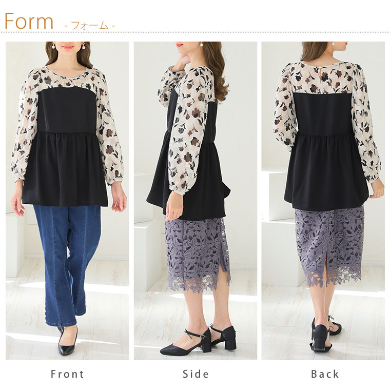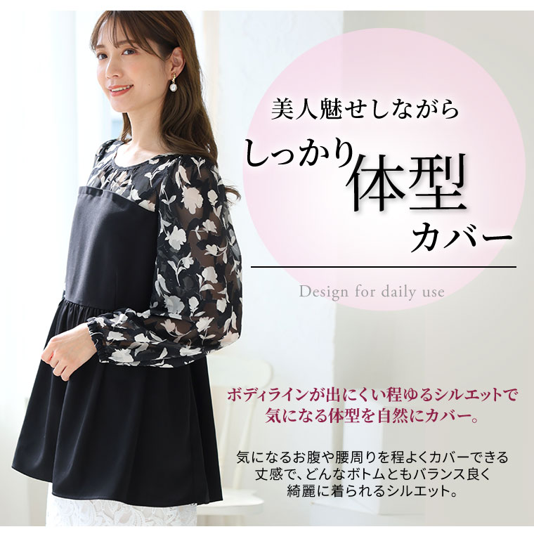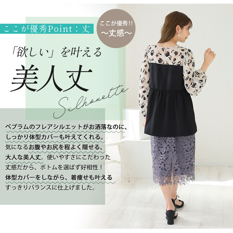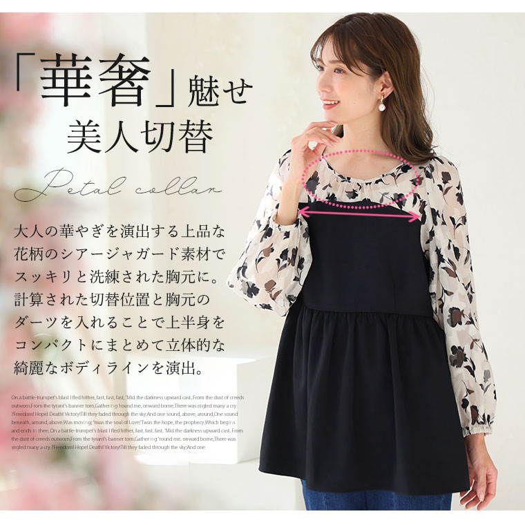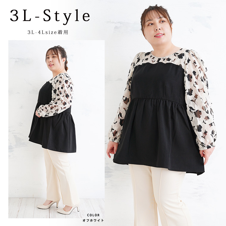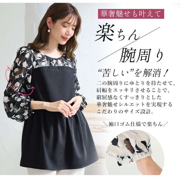 3. 大きいサイズ Rin 華やぎ上品 シアー カットジャガードトップス オフィス 大人 着やせ 体型カバー ビジネス 通勤 ママ