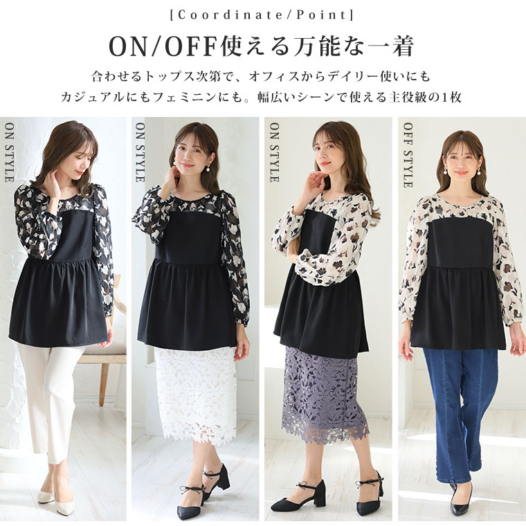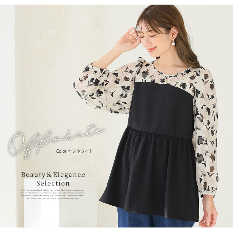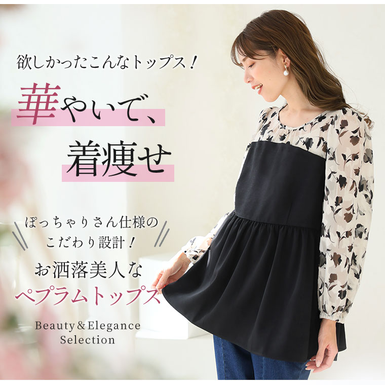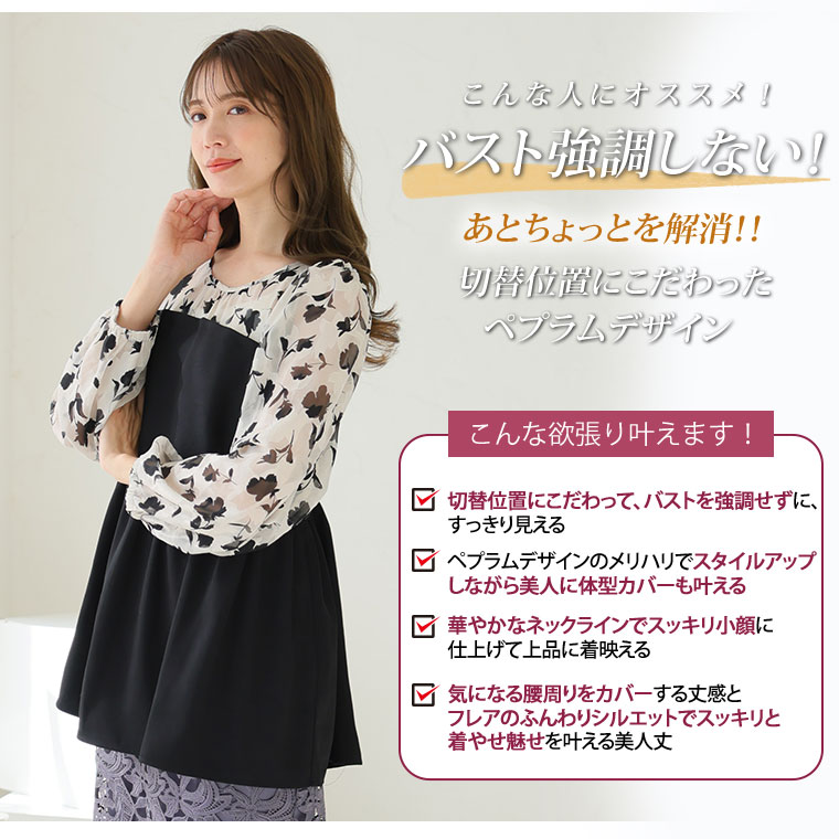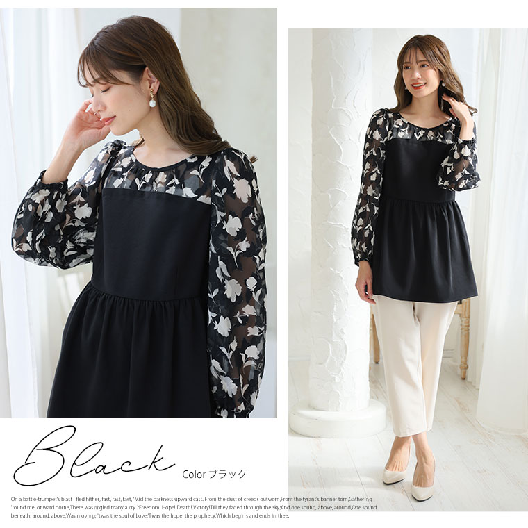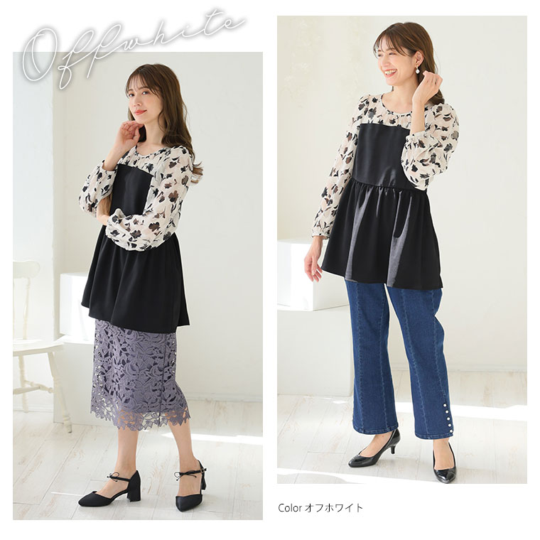 3. 大きいサイズ Rin 華やぎ上品 シアー カットジャガードトップス オフィス 大人 着やせ 体型カバー ビジネス 通勤 ママ