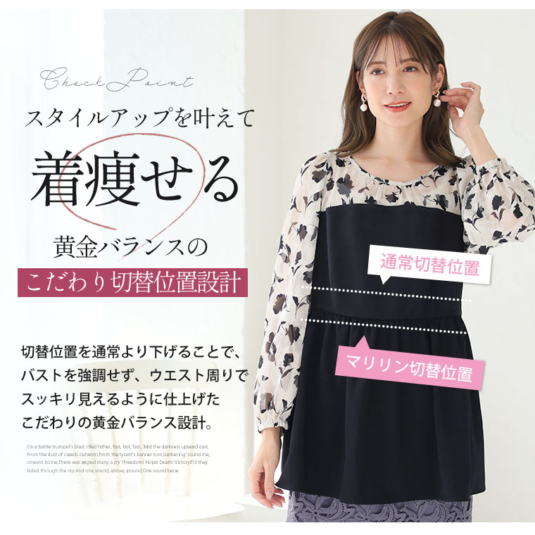 5. 大きいサイズ Rin 華やぎ上品 シアー カットジャガードトップス オフィス 大人 着やせ 体型カバー ビジネス 通勤 ママ
