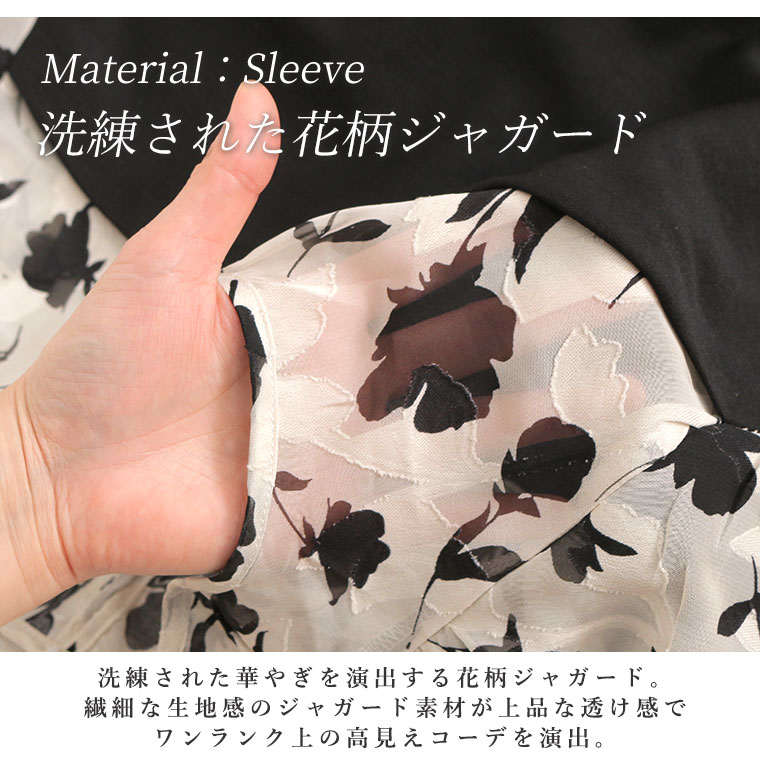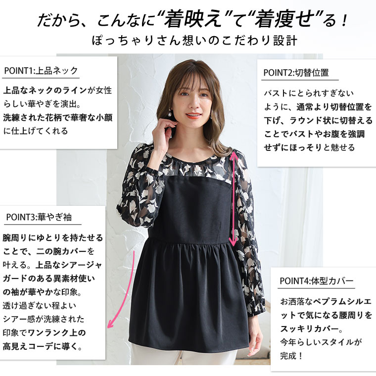 4. 大きいサイズ Rin 華やぎ上品 シアー カットジャガードトップス オフィス 大人 着やせ 体型カバー ビジネス 通勤 ママ