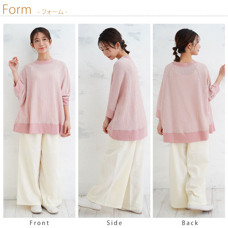 【Pastel leaf】リブ使いドルマン長袖プルオーバー