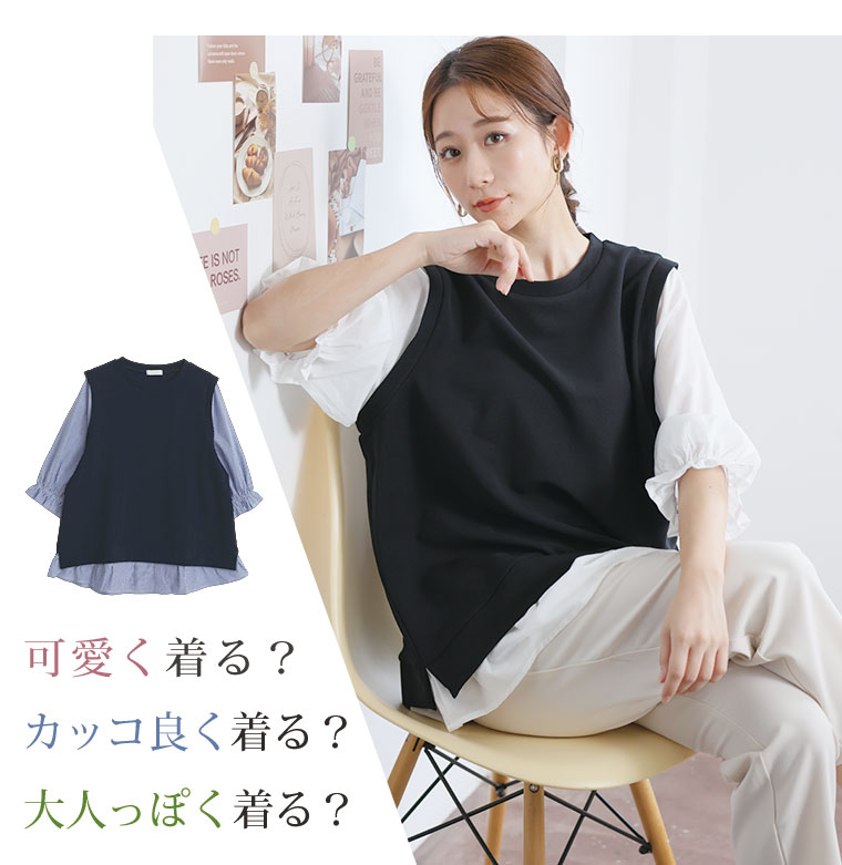 一枚で完結。 着るだけ完成、ドッキングTOPS