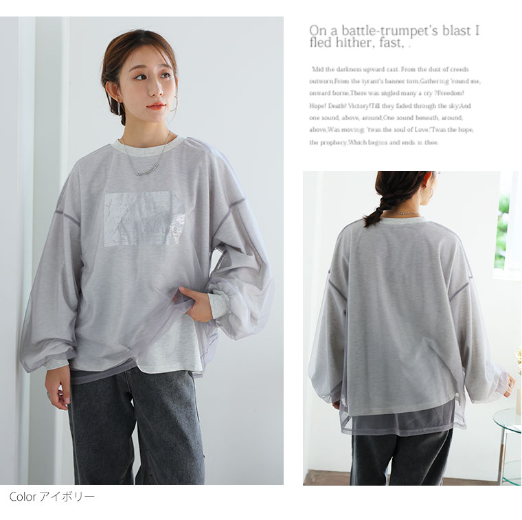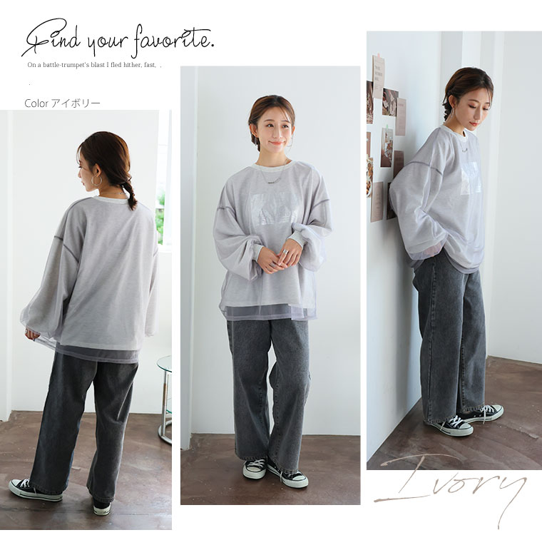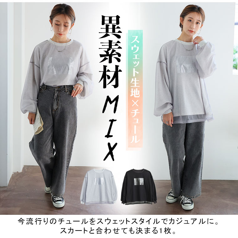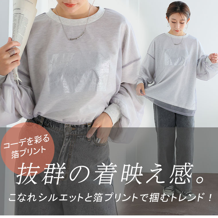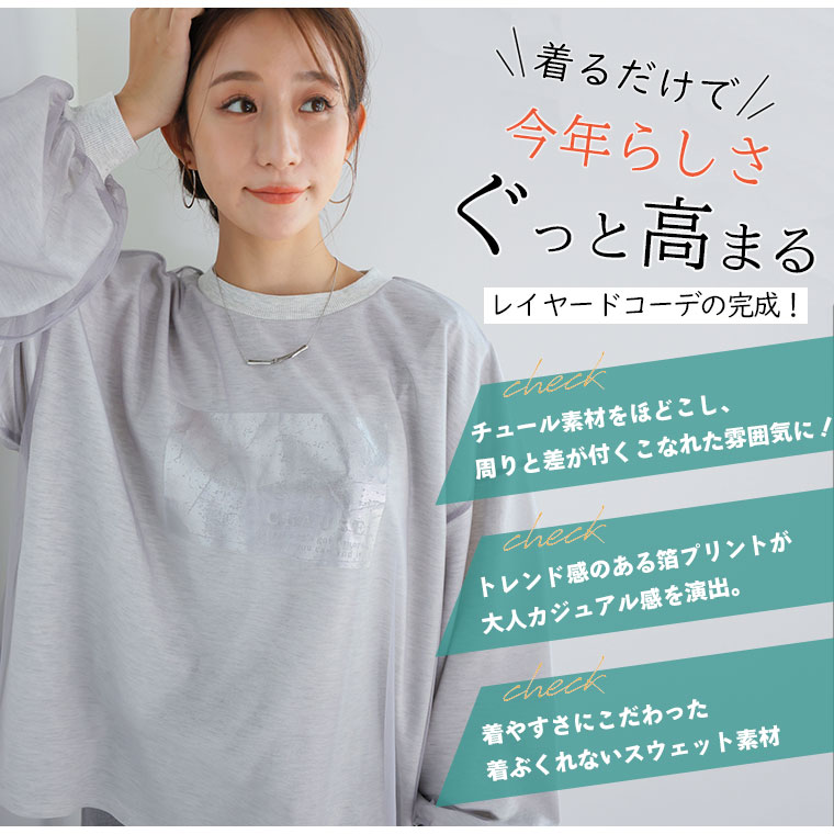 コーデを彩る優秀トップス!ロゴ入りシアーレイヤードスウェット