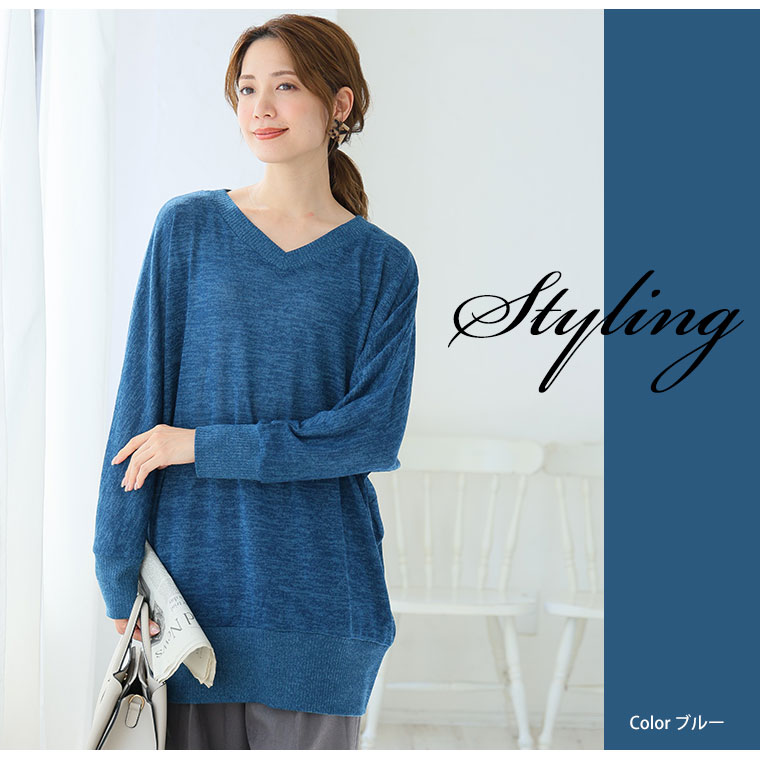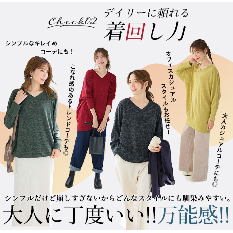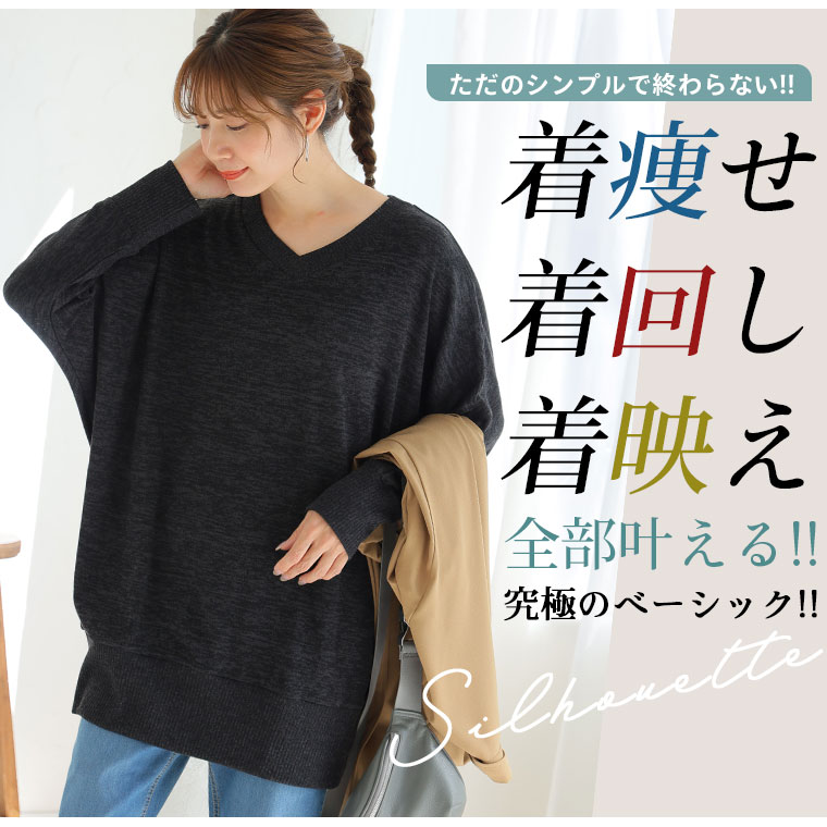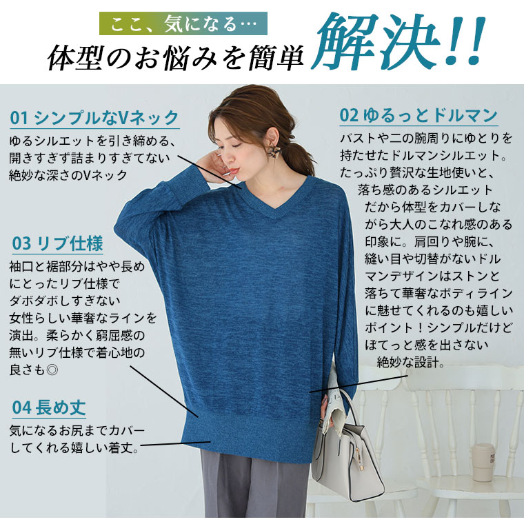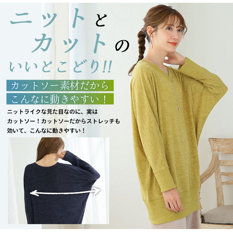 薄手のニット調素材でロングシーズンさらりと着られるドルマンニットソー