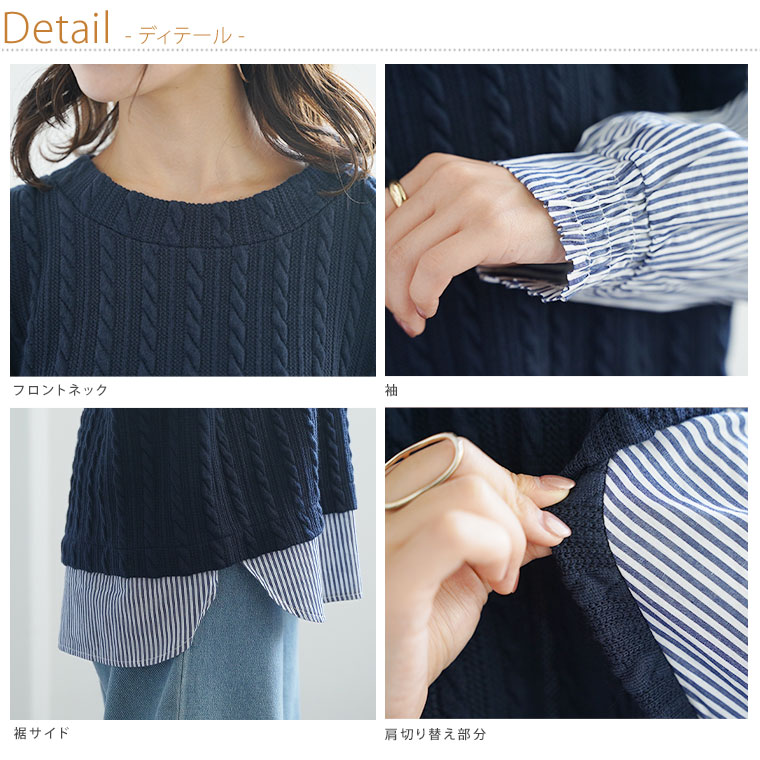 ニット×カットソーで着ぶくれの心配0 体型カバーTOPS