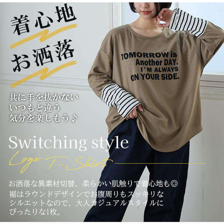 異素材切替デザインがお洒落なロゴプリントロンT