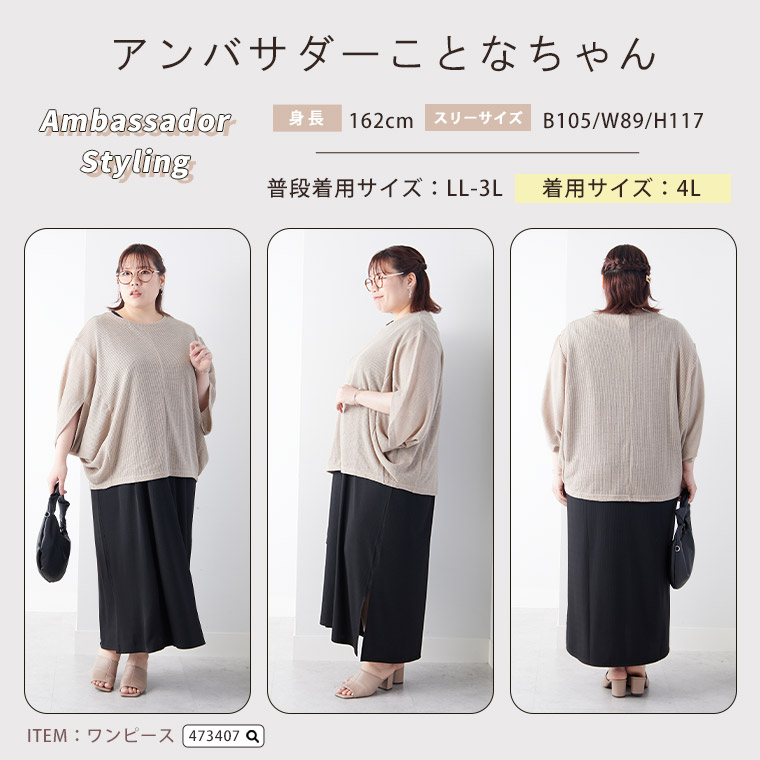 モデル 身長【160cm】 【LL-3L(タグ3L)サイズ着用】