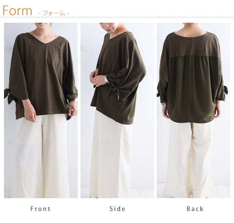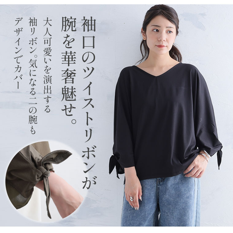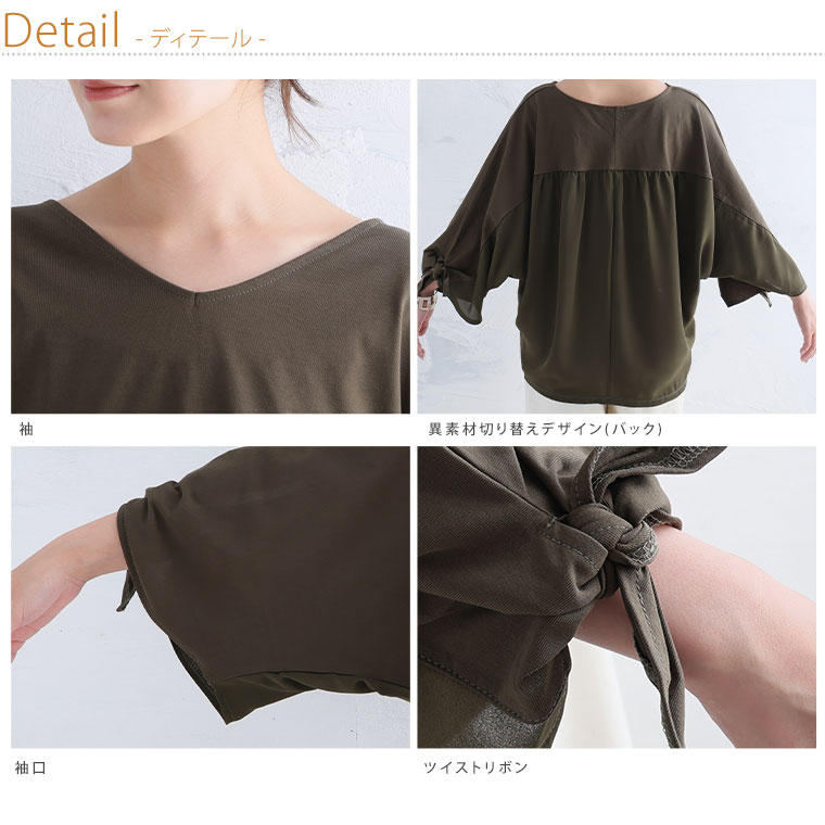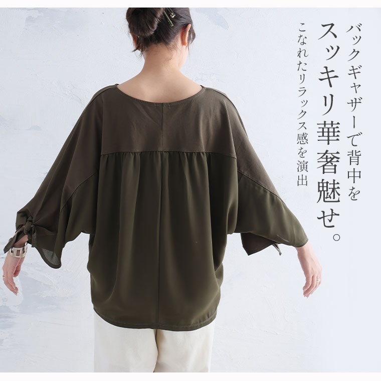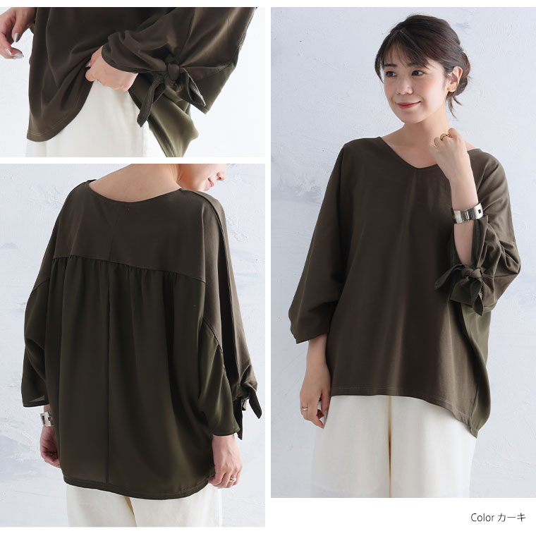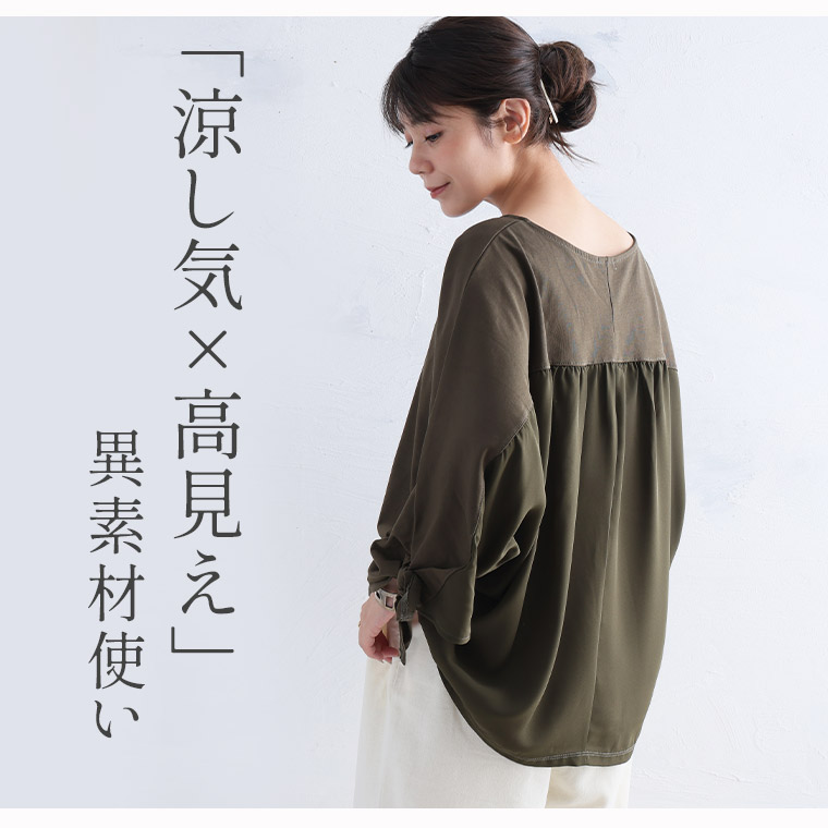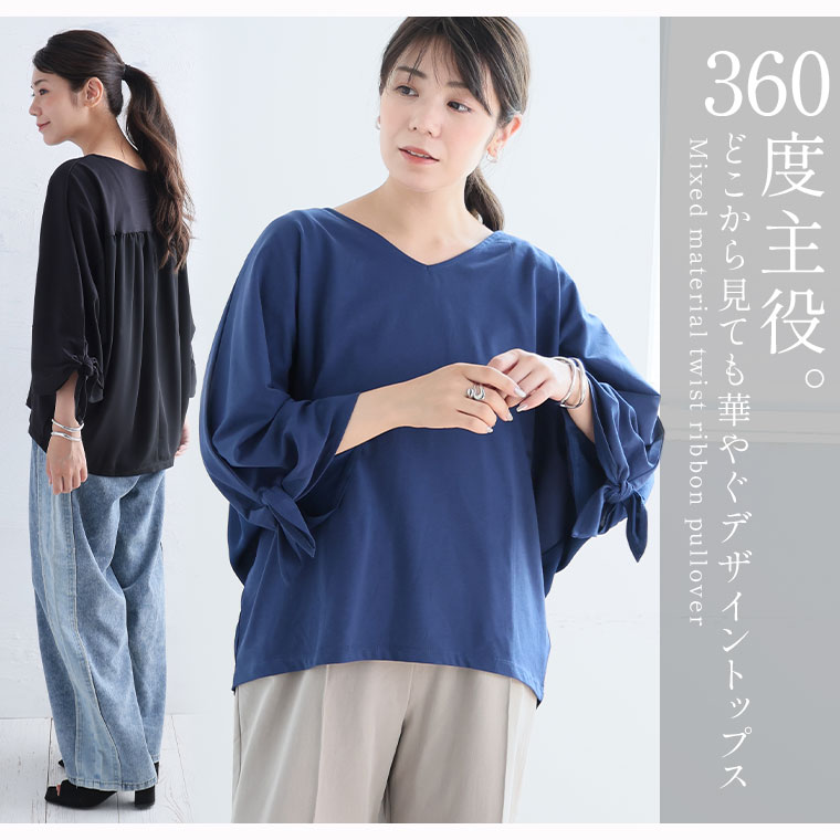 ゆったり着映える 異素材使いツイストリボンプルオーバー