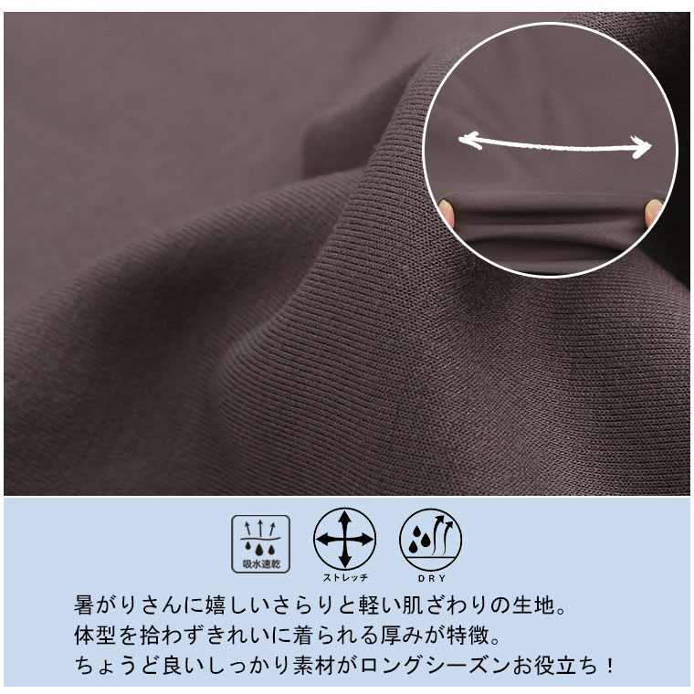 なめらかタッチの表面感が綺麗見え、肌面はサラッと快適な着心地♪